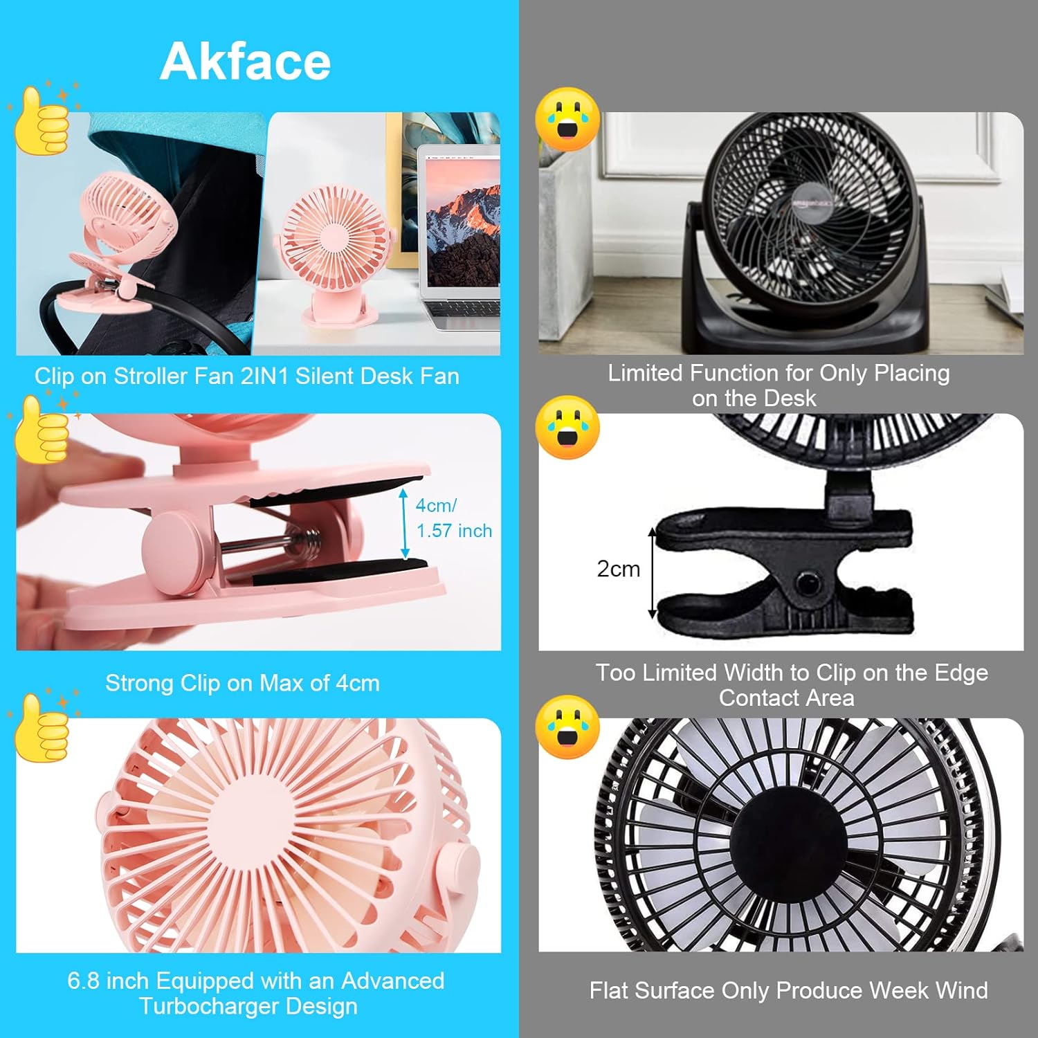 Details: akface Clip Tischventilator Leise Leistungsstarker, USB