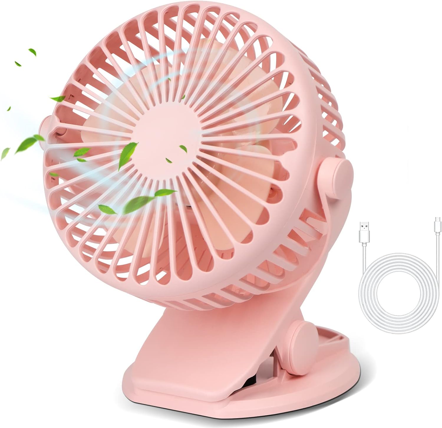 Starker Wind & Ultra Leise: Der wiederaufladbare Clip-On-Lüfter ist mit einem bürstenlosen Motor mit stärkerem Wind, aber geringerem Geräusch ausgestattet. Machen Sie sich also keine Sorgen, dass Sie beim Arbeiten, Lernen oder Schlafen gestört werden.