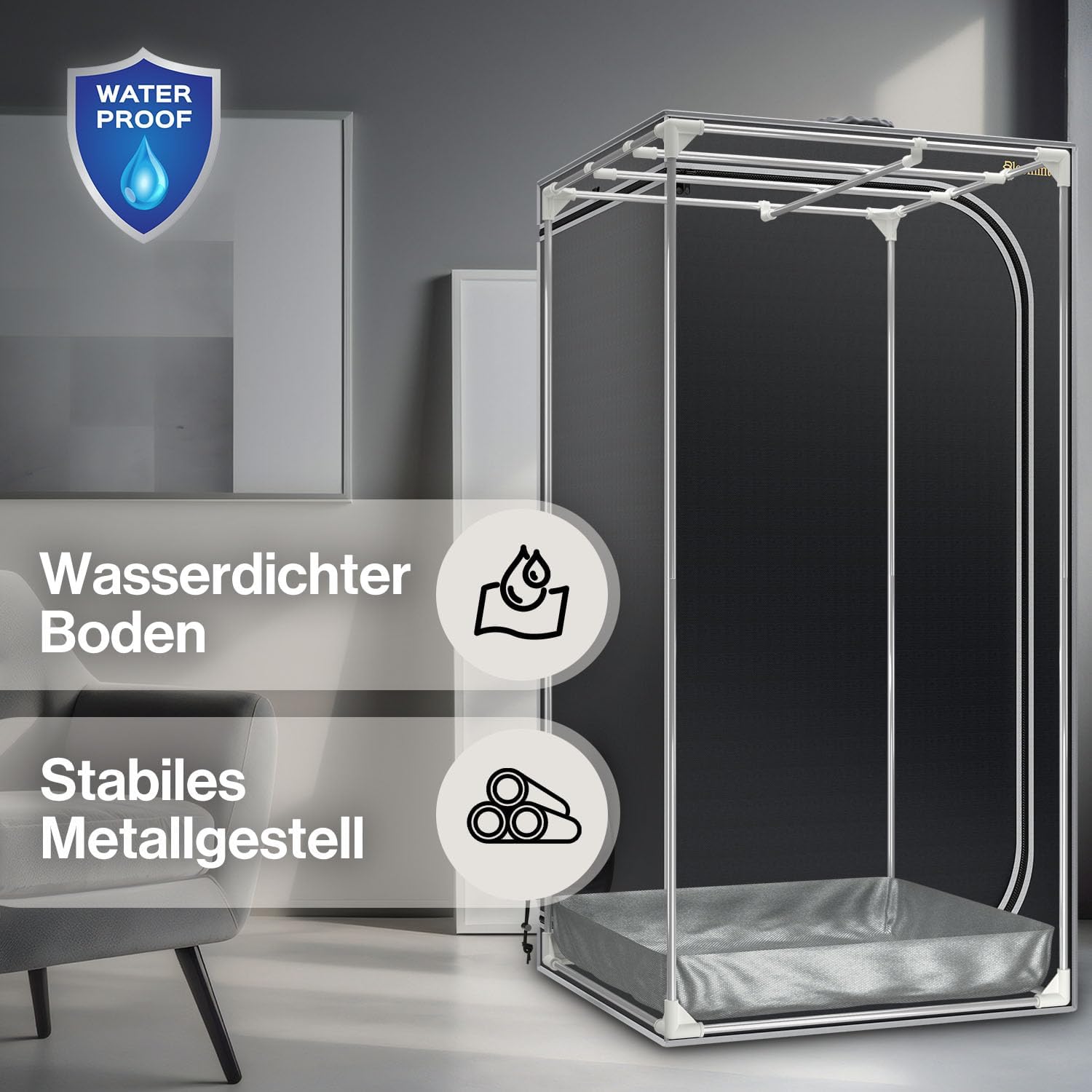 Schutz vor Wasser: Der extra Bodeneinsatz verhindert den Austritt von Flüssigkeiten, hält das Growzelt 80x80x160 cm sauber und erleichtert die Wartung.