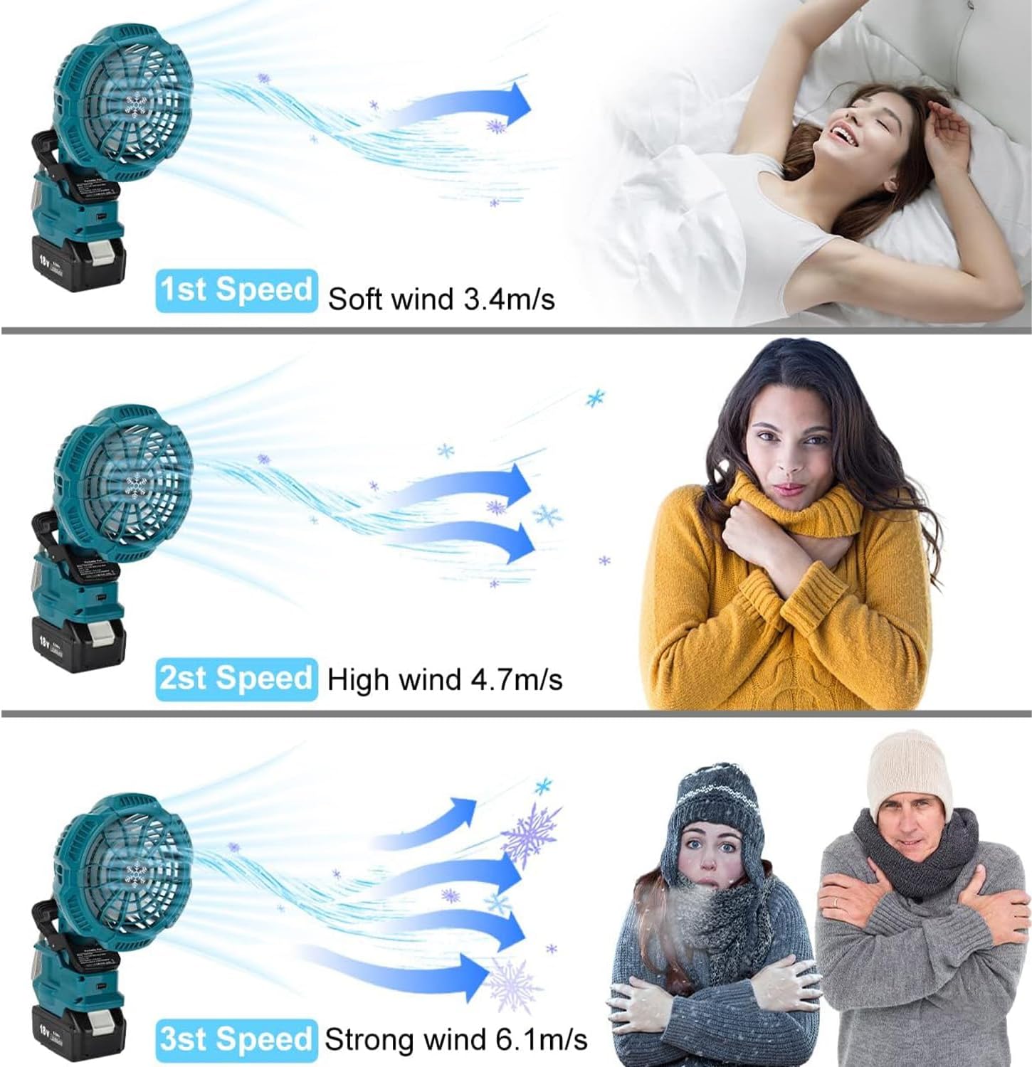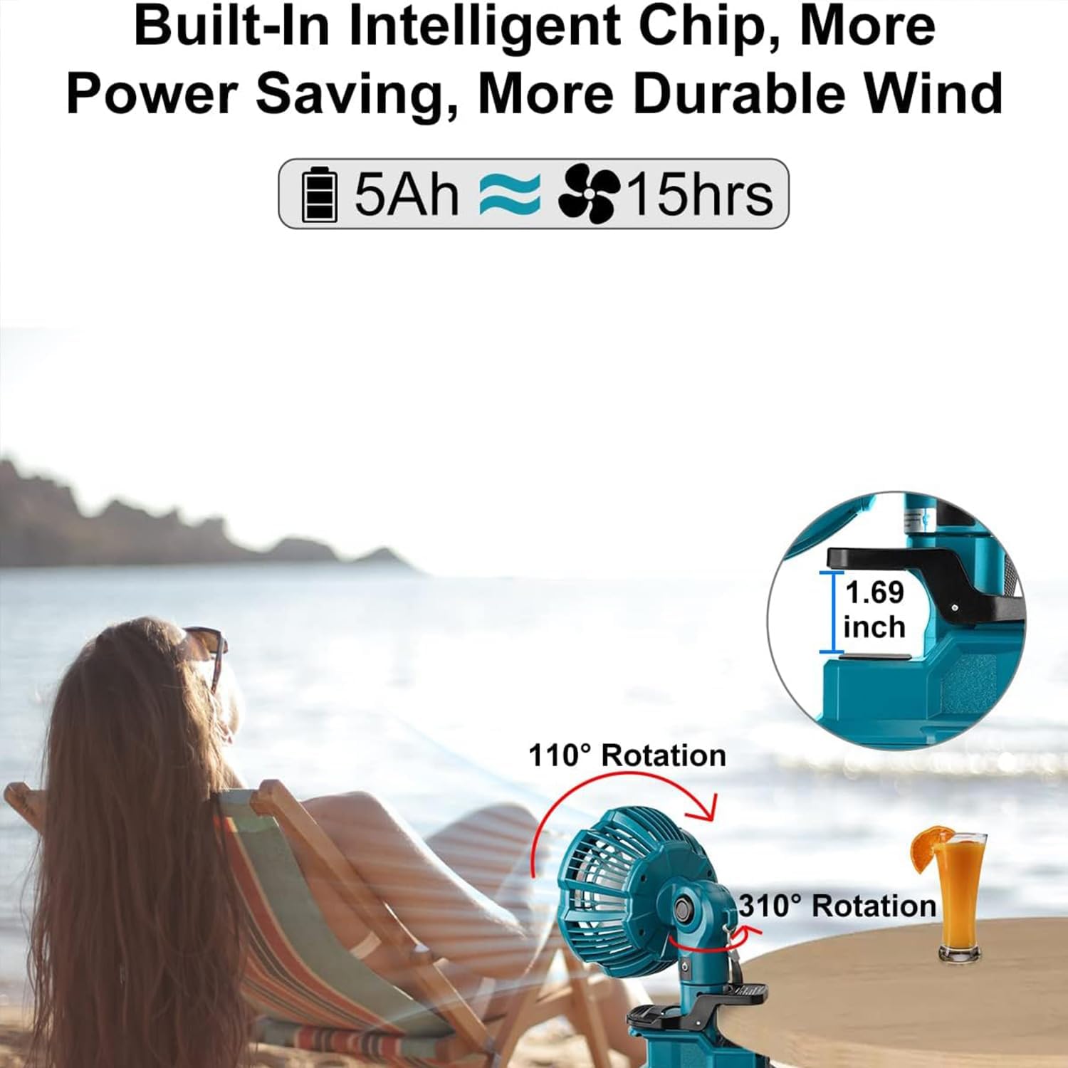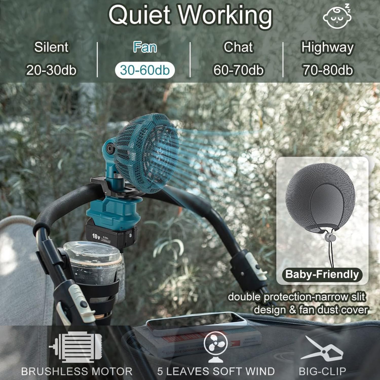 Camping Ventilator, Leise Clip Tischventilator für Makita 18V Batterie, 3 Geschwindigkeitsstufen, Tragbarer Clip-On-Ventilator für Kinderwagen, Schlafzimmer, Büro, Baustelle