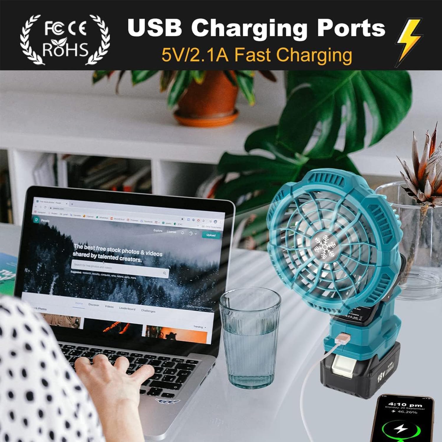 Schnelle Kühlung – Dieser aufsteckbare Tischventilator ist für den 18-V-Akku von Makita geeignet und der eingebaute bürstenlose Motor kann für eine starke und geräuscharme Luftmenge sorgen Gehen Sie mit dem Baby drinnen spazieren. Dieser tragbare Clip-Ventilator sorgt auf der Baustelle für sofortige Abkühlung.
