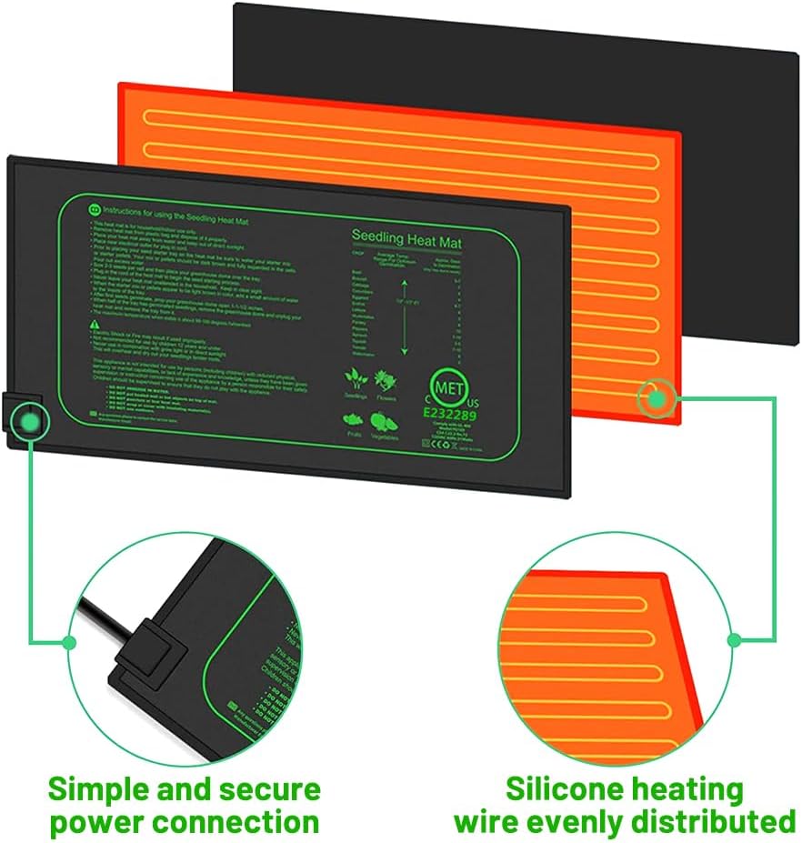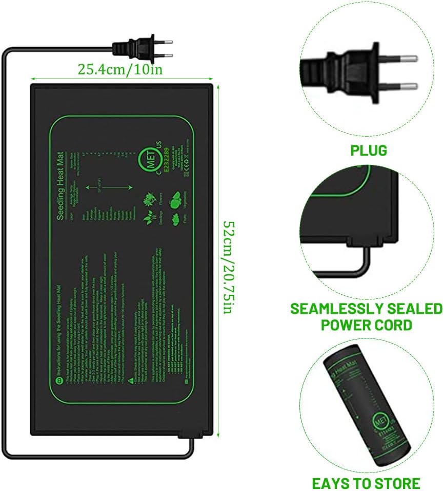 [Kompatibel mit den meisten Setzling-Heizmatten]: Die Größe dieser Heizmatte Pflanzen beträgt 25.5 x 52.5cm, mit 145CM Netzkabel, Die Arbeitsleistung des Pflanzenheizkissens beträgt nur 21 W, 220V~230V. Legen Sie es einfach unter die Saatschale, geeignet für die allgemeine Pflanzenkeimung.