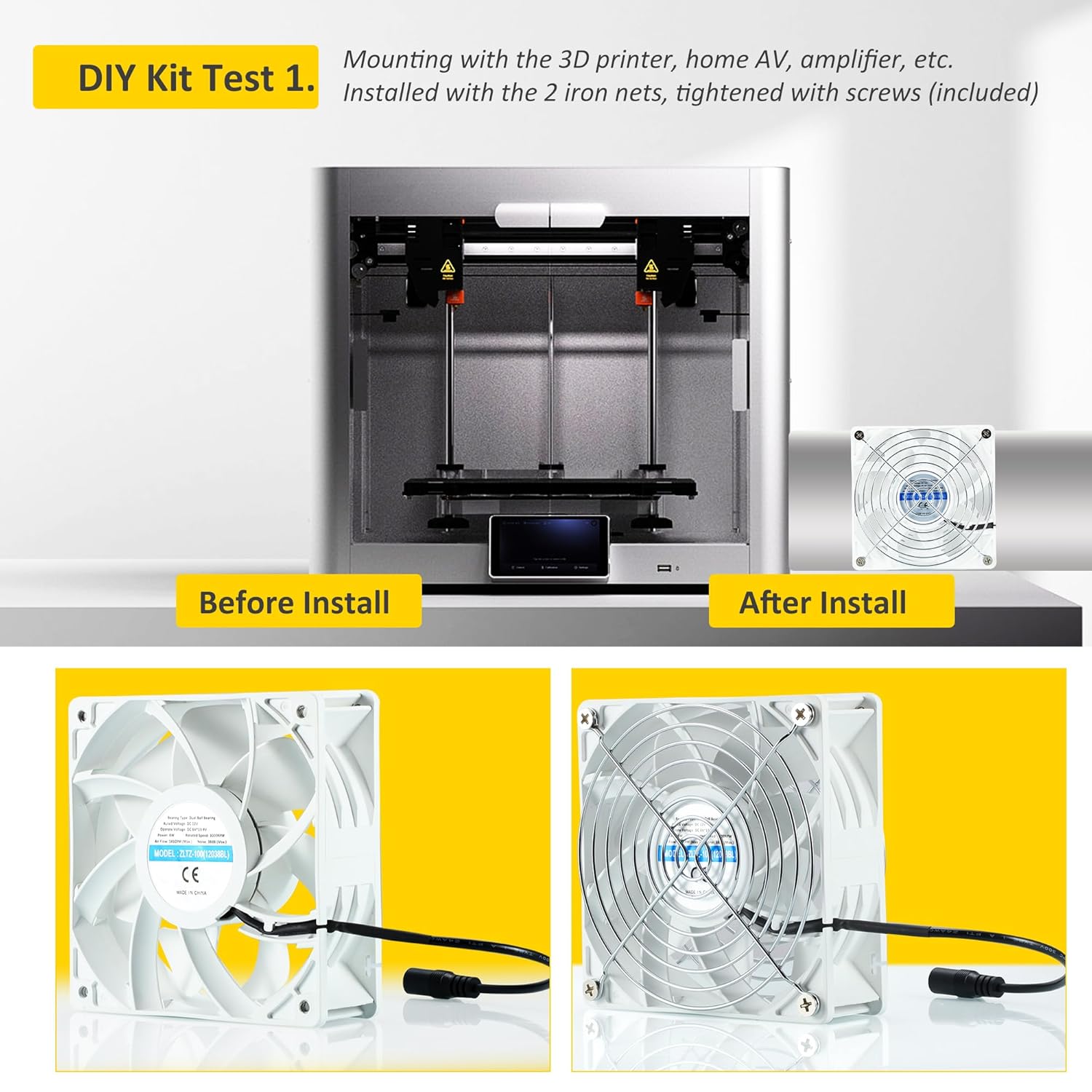 DC12V -Motor: Das Lüftungskit wählt den Gehäuselüfter mit zwei Kugellagern aus, DC 12V -Nennspannung , Luftstrom bis zu 141cfm. Die Lüftergröße beträgt 120 mm*120 mm*38 mm / 4,8 „*4,8″*1,52 „(L*W*T).