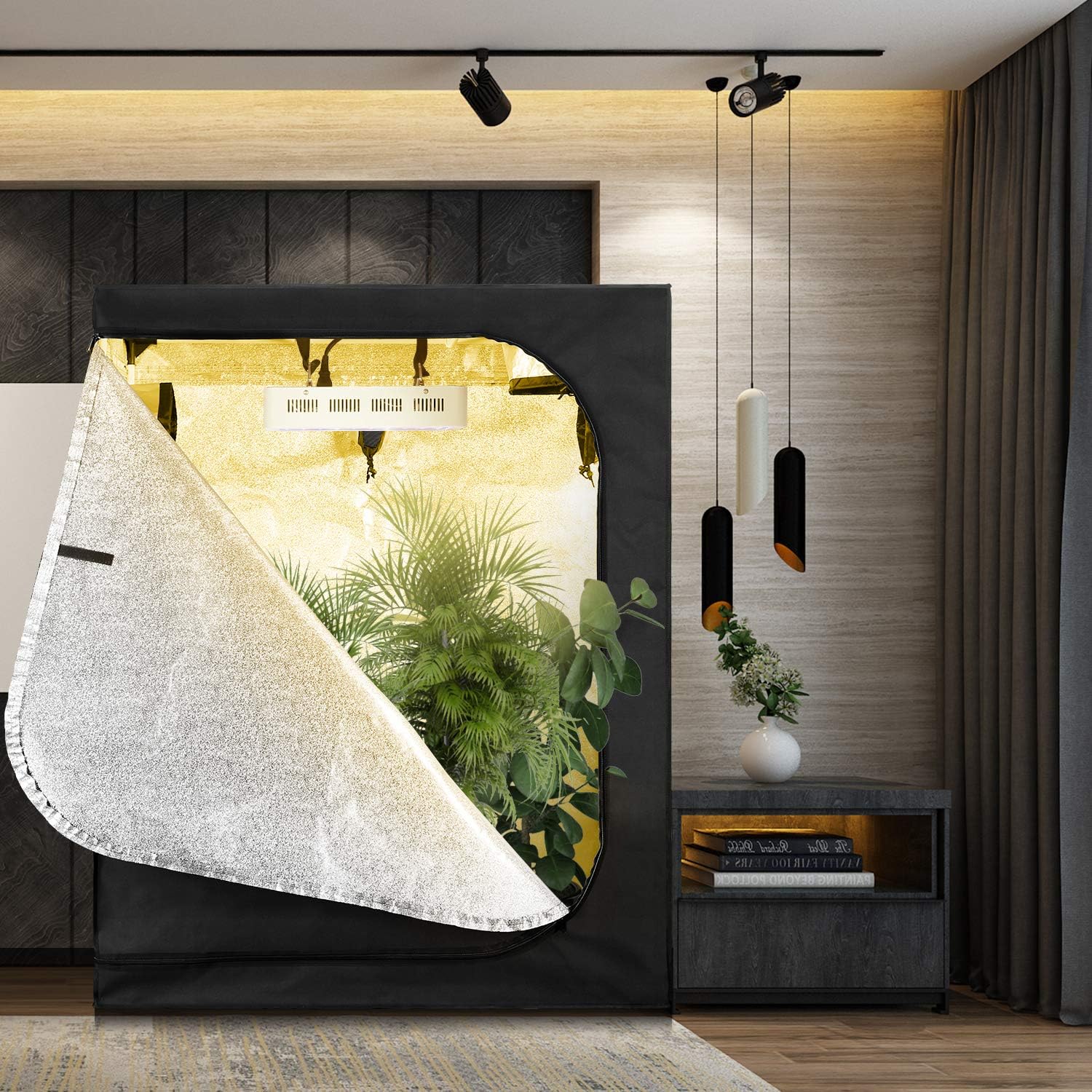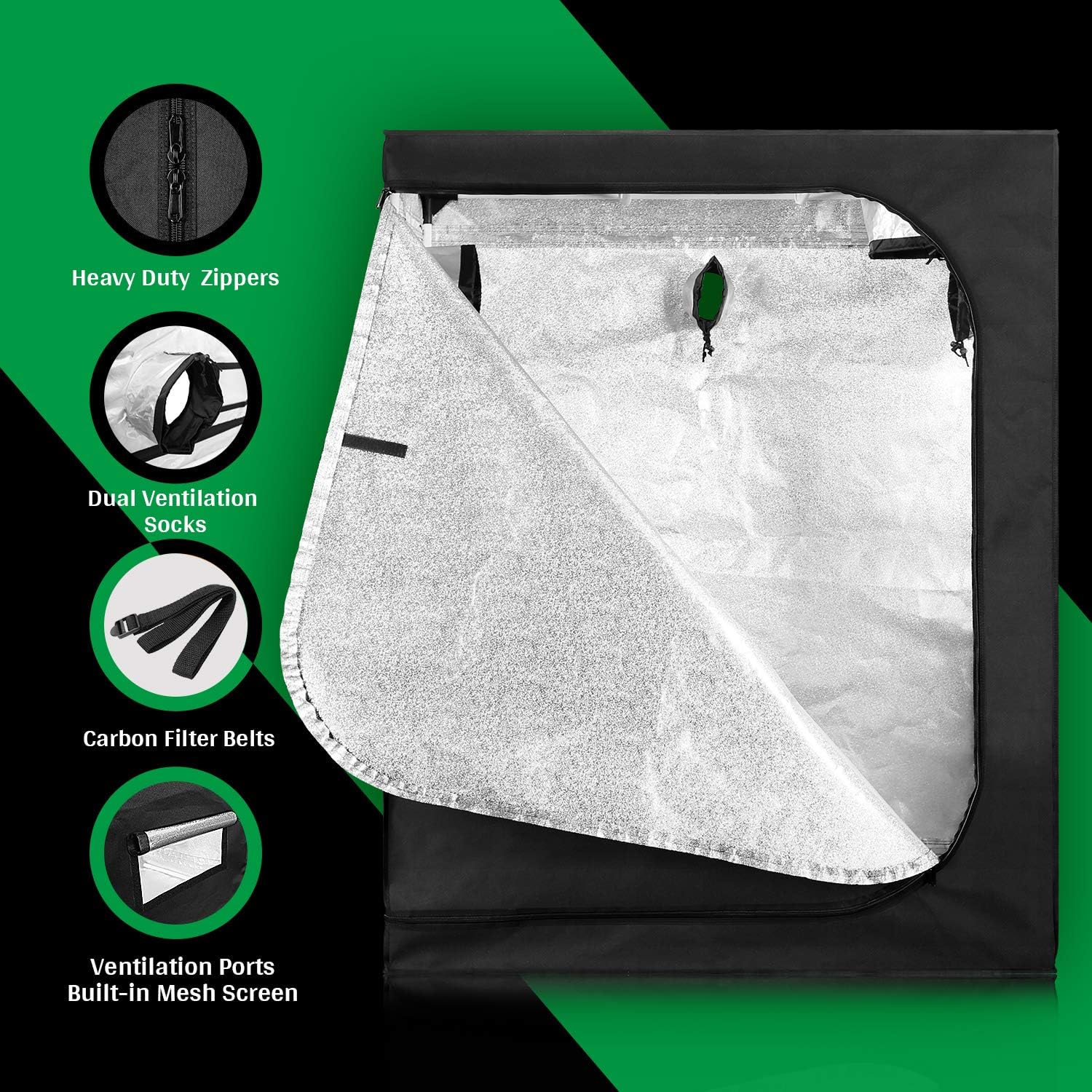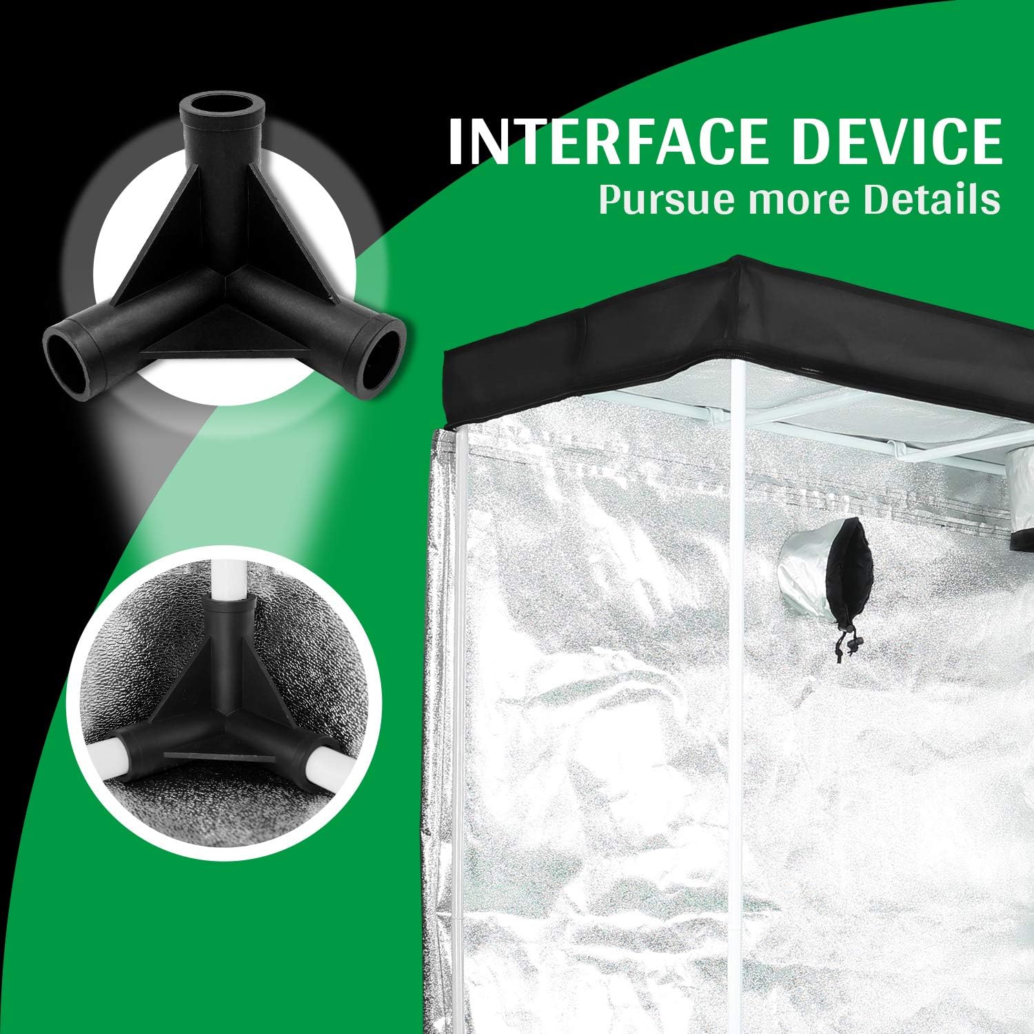 【DOPPELSPAREN SIE ALLES LICHT】: Das GA-Wachstumszelt verwendet ein 600D Oxford-Tuch mit hoher Dichte und ist mit 98% -reflektierendem silberfarbenem PET-Mylar ausgekleidet. Es ist großartig, um alles Licht in das Zelt zu speichern Doppelte Nähte schützen das Zelt vor gleichzeitigem Lichtaustritt.