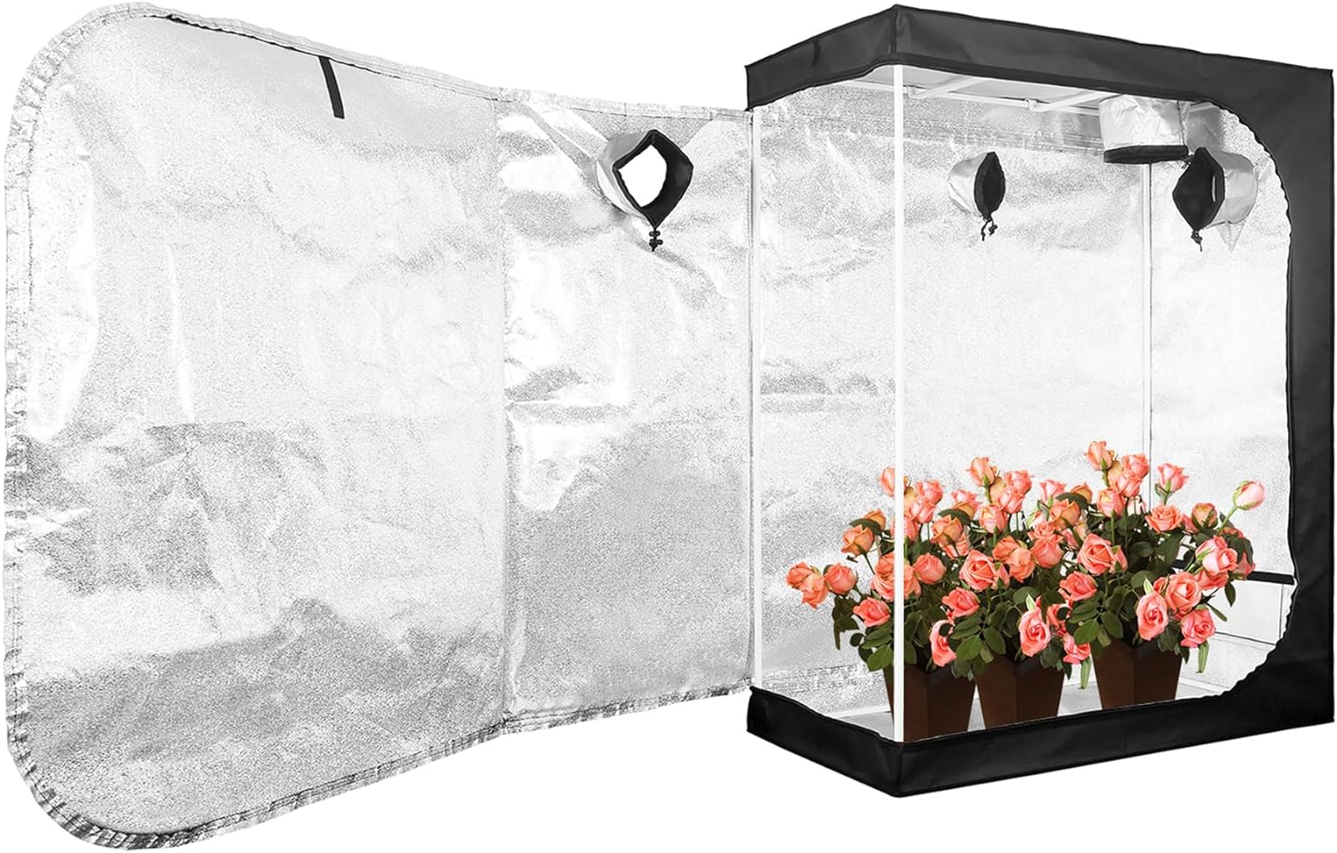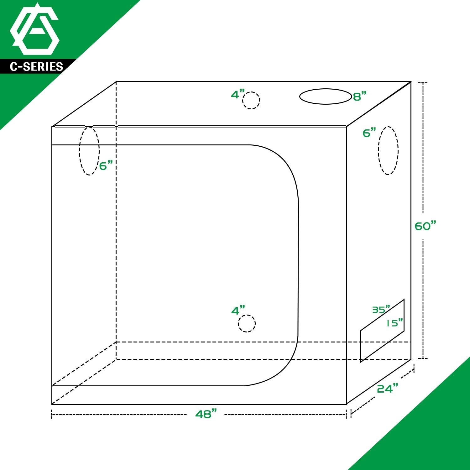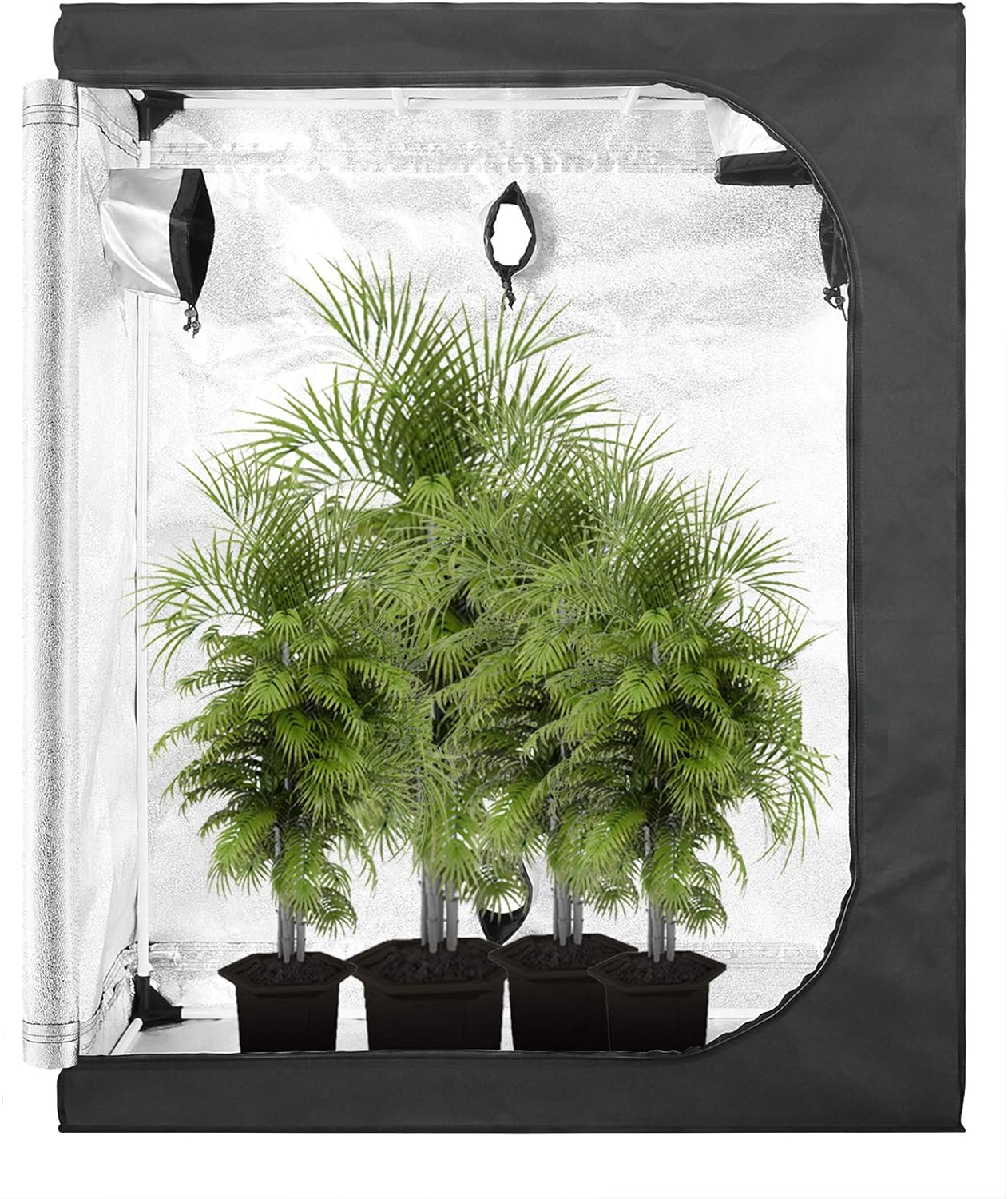 【DOPPELSPAREN SIE ALLES LICHT】: Das GA-Wachstumszelt verwendet ein 600D Oxford-Tuch mit hoher Dichte und ist mit 98% -reflektierendem silberfarbenem PET-Mylar ausgekleidet. Es ist großartig, um alles Licht in das Zelt zu speichern Doppelte Nähte schützen das Zelt vor gleichzeitigem Lichtaustritt.