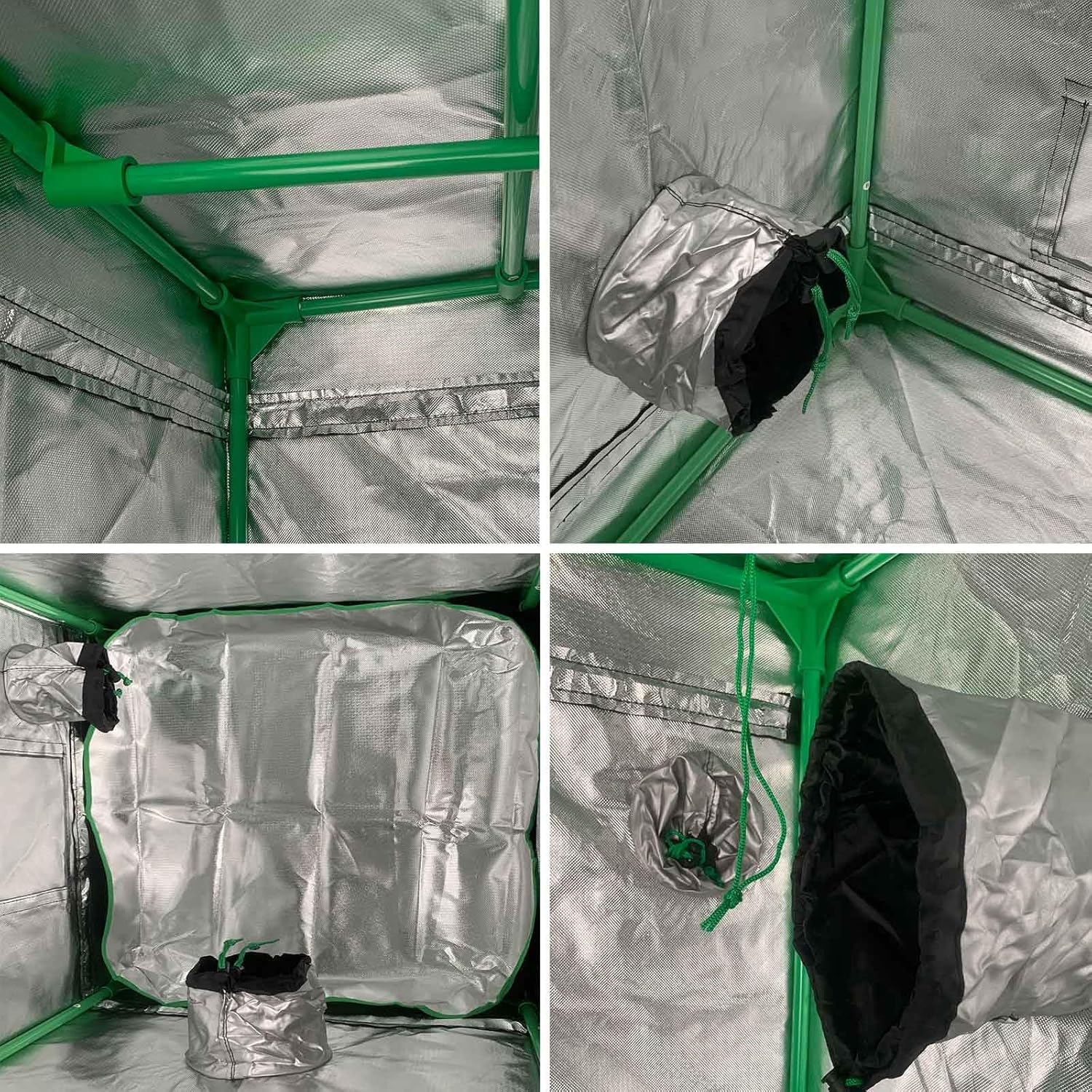 EINGESCHLOSSENER RAUM: Ausgewähltes wasserdichtes Gewebe mit hoher Dichte und doppelter Naht bietet eine ausgezeichnete Reißfestigkeit und schirmt gleichzeitig das Außenlicht wirksam ab. Die PE-Innenauskleidung verbessert nicht nur die Lichtreflexion, sondern sorgt auch für eine sicherere Wachstumsumgebung für Pflanzen.