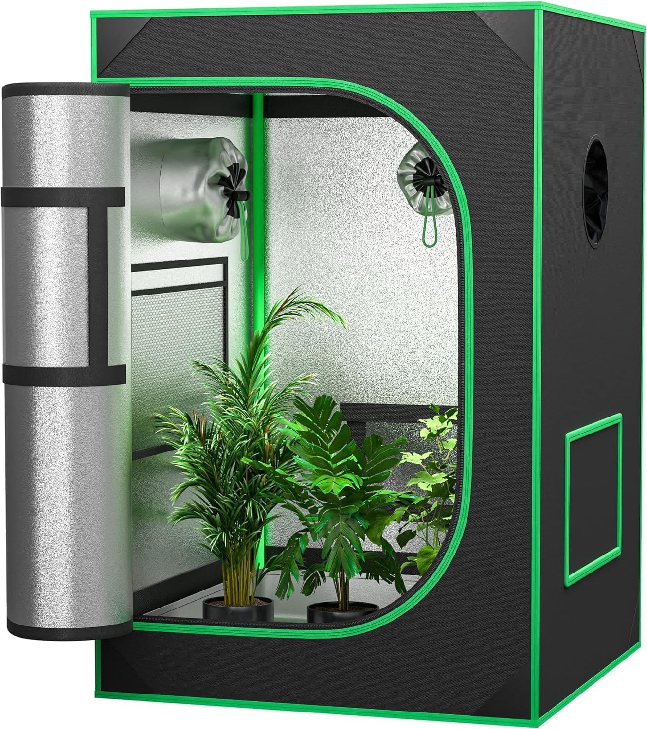 EINGESCHLOSSENER RAUM: Ausgewähltes wasserdichtes Gewebe mit hoher Dichte und doppelter Naht bietet eine ausgezeichnete Reißfestigkeit und schirmt gleichzeitig das Außenlicht wirksam ab. Die PE-Innenauskleidung verbessert nicht nur die Lichtreflexion, sondern sorgt auch für eine sicherere Wachstumsumgebung für Pflanzen.