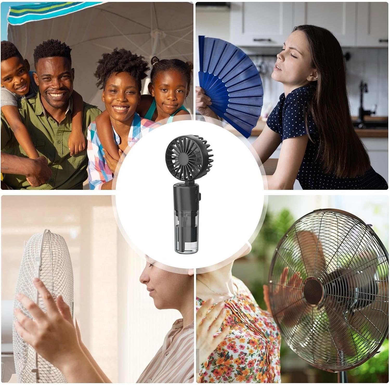 ♦Vielseitiges Design: Mit seinem vielseitigen und praktischen Design kann dieser handgehaltene Nebelventilator den Anforderungen verschiedener Szenarien gerecht werden. Verwenden Sie ihn als Handventilator im Freien oder stellen Sie ihn für einen gleichmäßigen Luftstrom auf Ihren Schreibtisch.