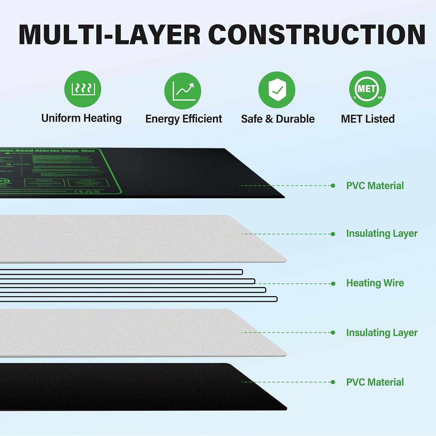 Zuverlässigkeit von Experten: Mit einer konstanten Temperatur von -12,2 bis 6,7 °C über der Umgebungstemperatur sorgt diese professionelle Heizlösung für eine optimale Umgebung für die Keimung von Gemüse-, Pflanzen-, Kräuter- und Blumensamen.