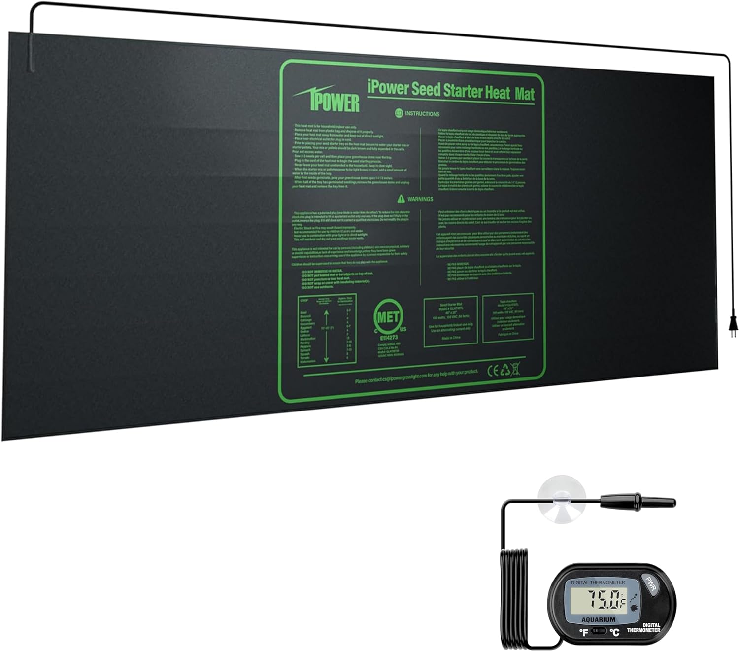 iPower 121,9 x 50,8 cm große, langlebige, wasserdichte Heizmatte mit digitalem Thermometer für zuverlässige Wärme für die Keimung von Hydrokulturpflanzen im Innenbereich