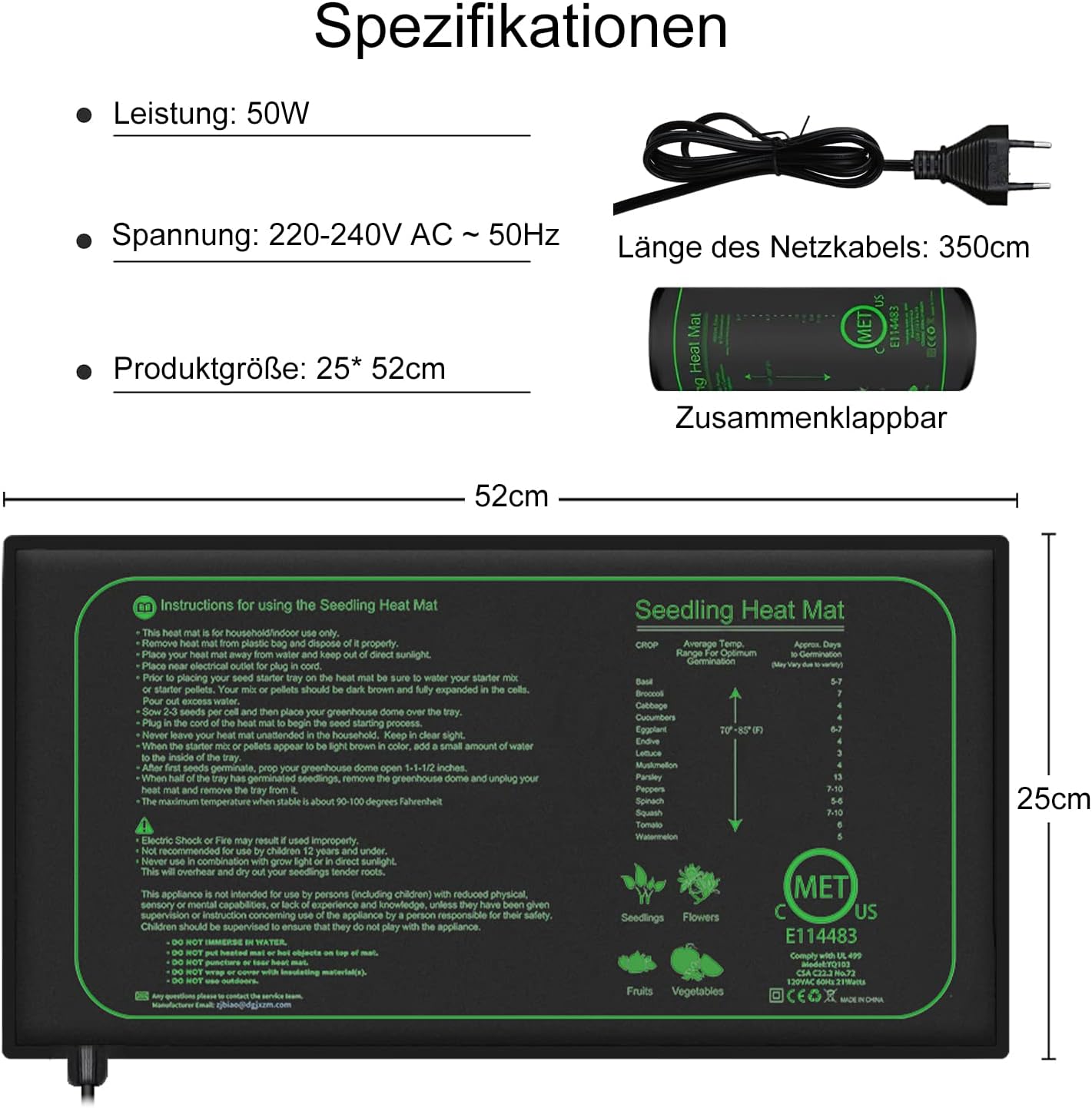 Perfekte Größe für 1020 Pflanzschalen: Mit einer Größe von 10 x 20,75 Zoll (527*254mm) passt die Heizmatte perfekt zu 1020 Pflanzschalen. Durch die gleichmäßige und sanfte Wärmeverteilung hilft sie den Setzlingen dabei, optimal zu gedeihen.