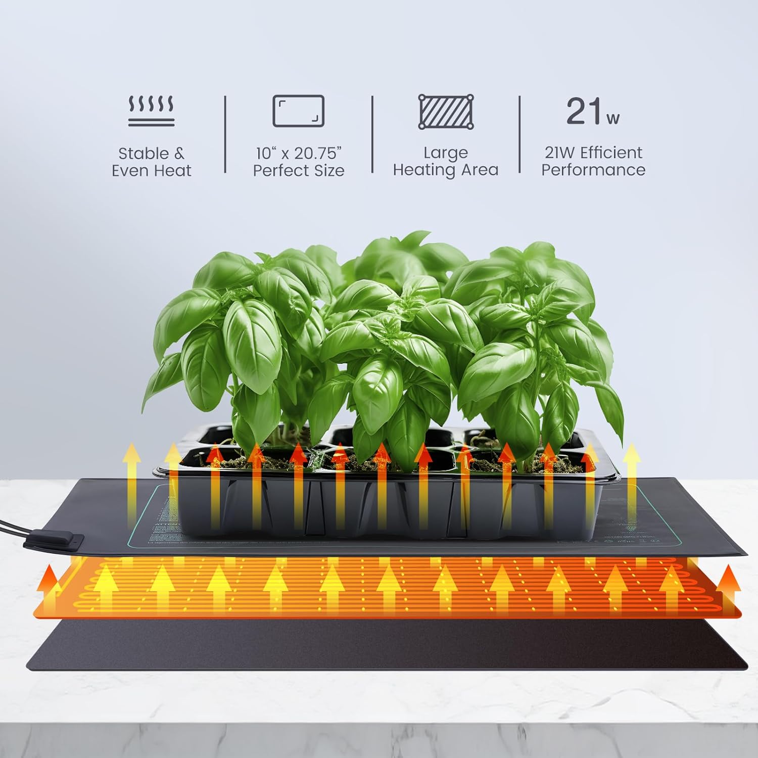 5,9 Fuß langes Stromkabel: Die Hauptheizmatte wird mit einem langen Stromkabel geliefert, das die Nutzungsflexibilität erhöht und die Einrichtung eines Pflanzbereichs für Kirschtomaten, Rosmarin, Paprika und andere Pflanzen im Innenbereich bequemer macht. Diese Wärmematten spenden Ihren Pflanzen Wärme, sodass Sie das ganze Jahr über ernten können.