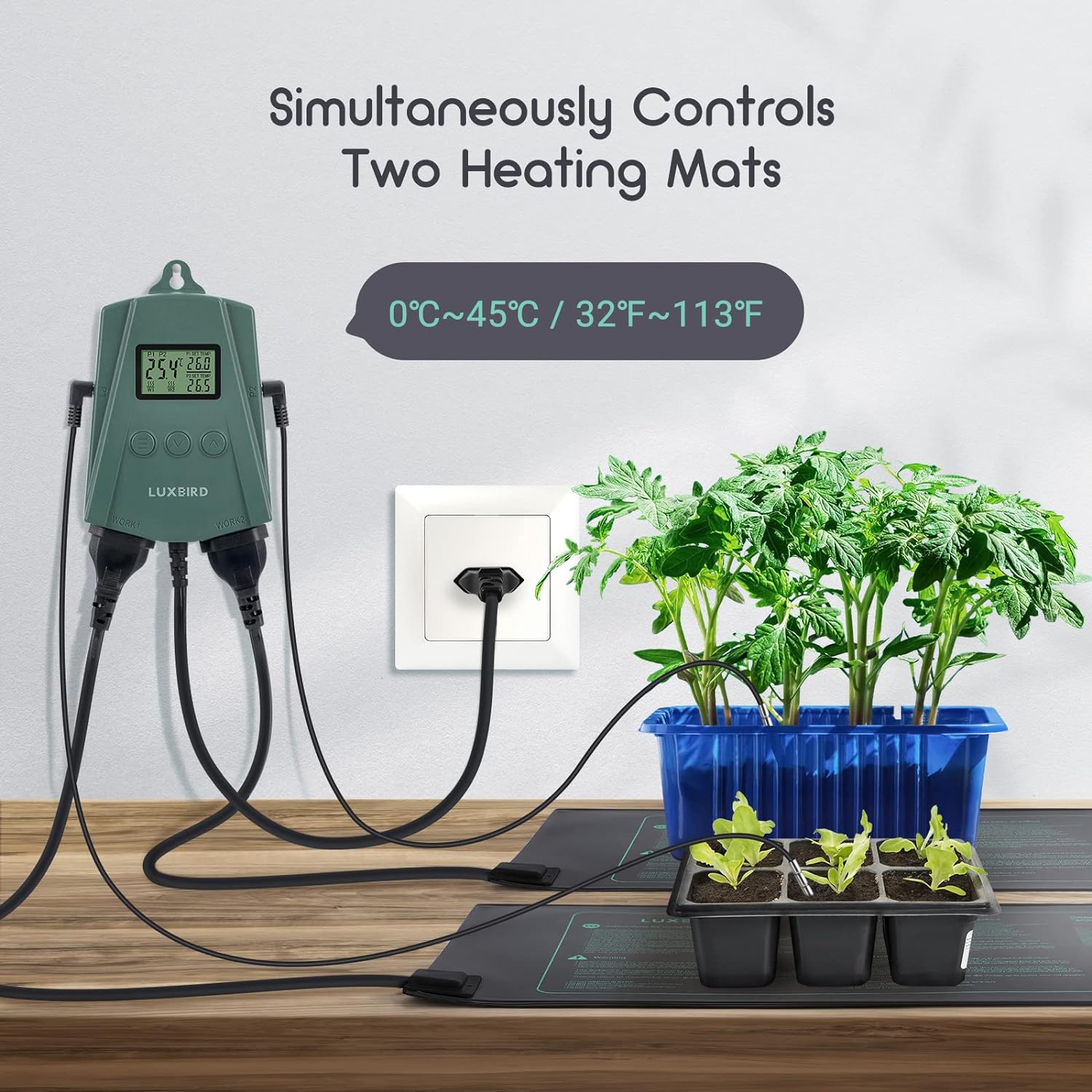【All-In-One-Kombination】Diese Heizmatten-Kombination für das Wachstum von Sämlingen umfasst eine Heizmatte, eine Sensorsonde und einen digitalen Thermostatregler. Mit diesem praktischen Heizset können wir Sämlinge zum Keimen und Gedeihen anregen, indem wir kontinuierlich sanfte und gleichmäßige Wärme erzeugen.