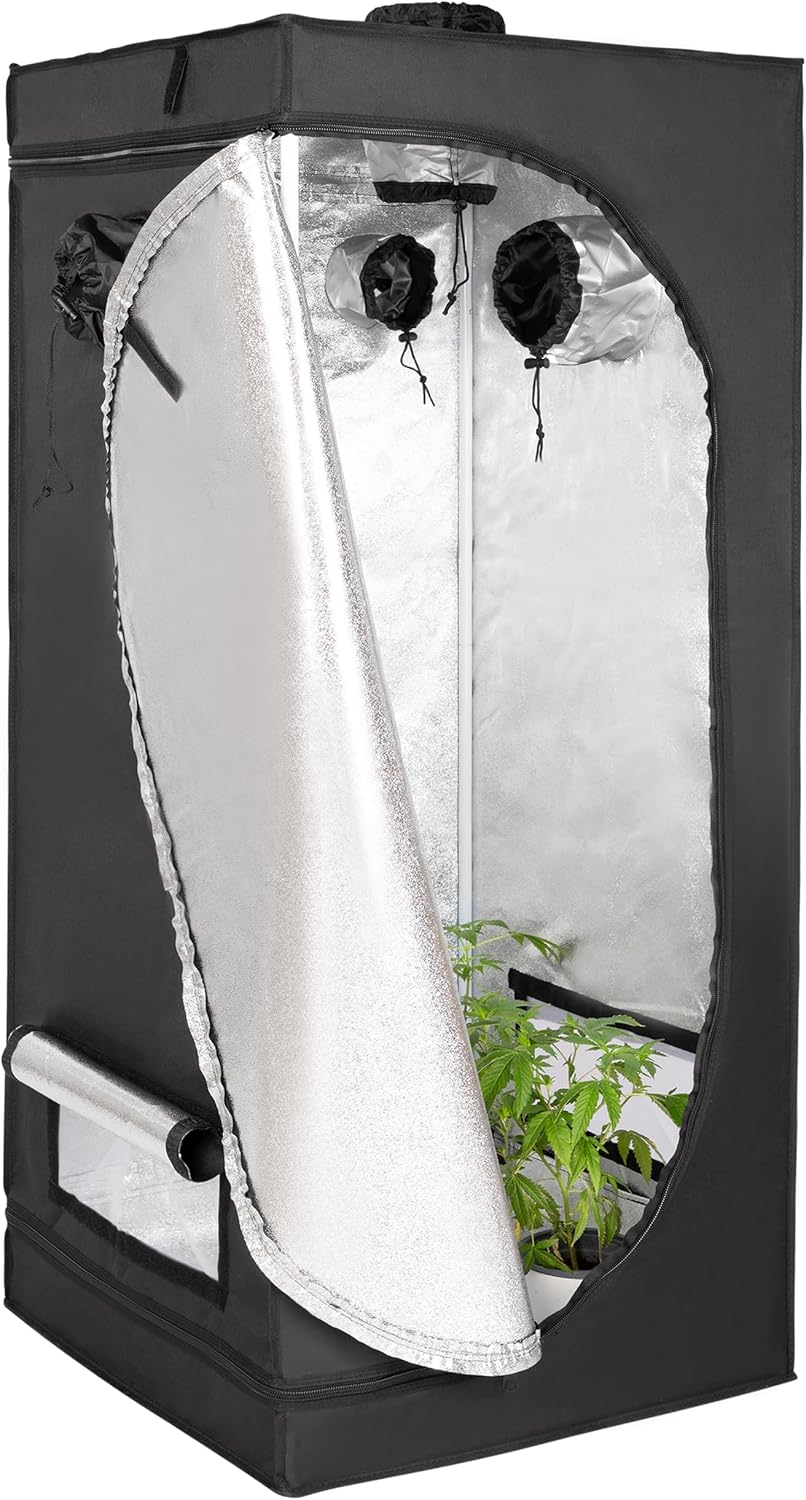 ONVAYA Pflanzen-Zuchtzelt ǀ Das Zuchtzelt ist dank der Rahmenkonstruktion aus Metall sowie der Oberfläche aus 600D-Oxford-Gewebe mit PVC-Beschichtung sehr robust und stabil ǀ Das Indoor-Gewächshaus bietet ideale Bedingungen für ein kontrolliertes Pflanzenwachstum: 99,9 % des Außenlichts werden abgeschirmt, während im Innenraum 95 % Lichtreflexion gegeben ist ǀ Der Aufbau des Pflanzenzelts ist einfach und kann in wenigen Minuten erfolgen ǀ Der Zuchtschrank verfügt über 5 Zugänge mit Doppelzugbändern: So können Kabel, Licht sowie ein Belüftungssystem problemlos installiert werden ǀ Die Klettverschluss-Luftansaugklappe sowie das Schutznetz sorgen für ein günstiges Innenraumklima und den Schutz vor äußeren Einflüssen