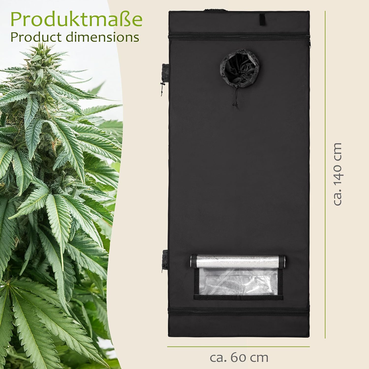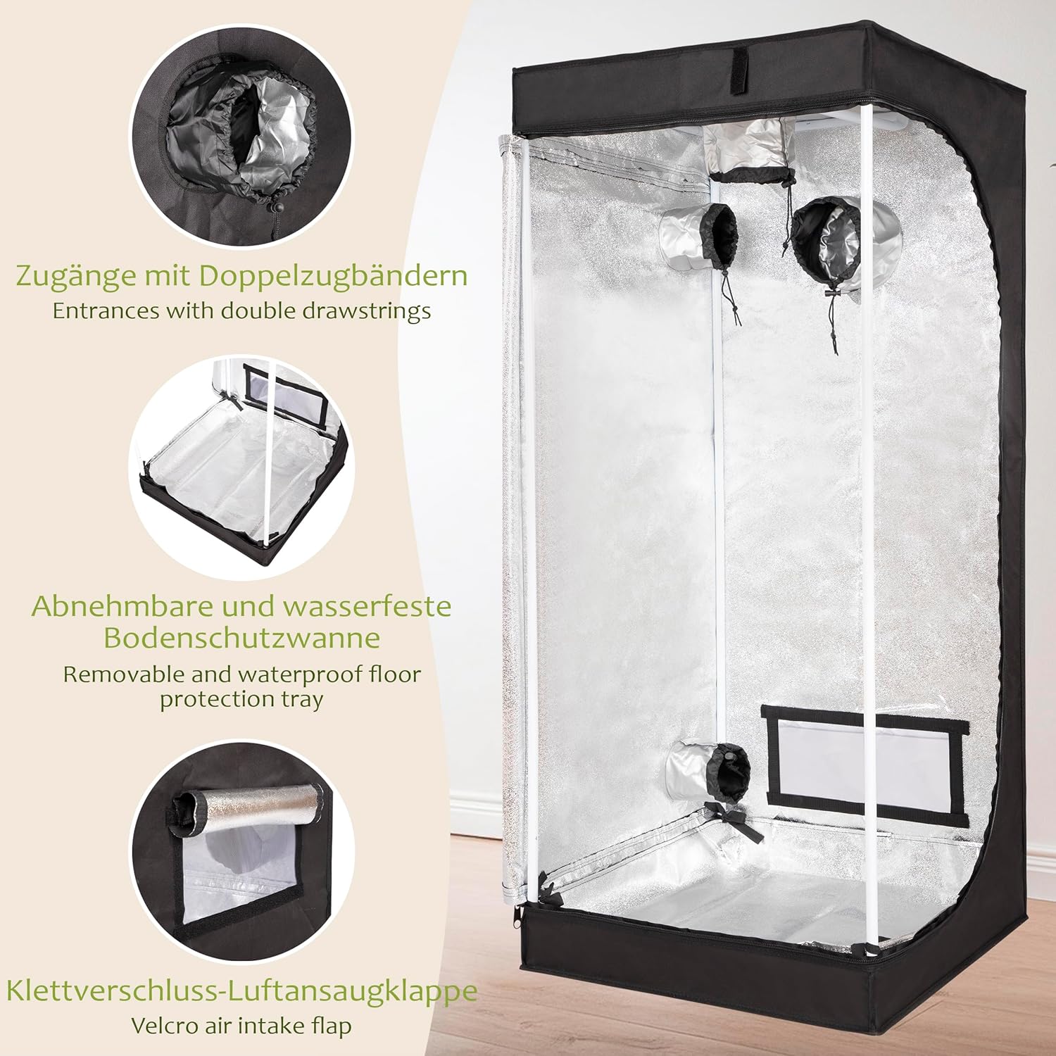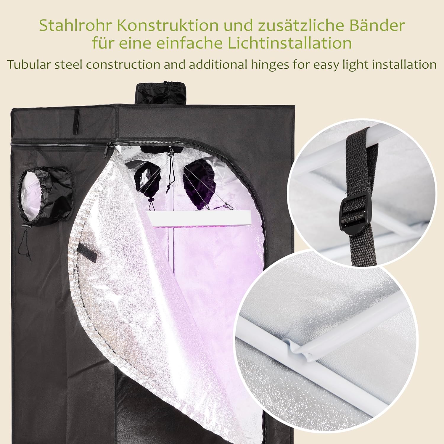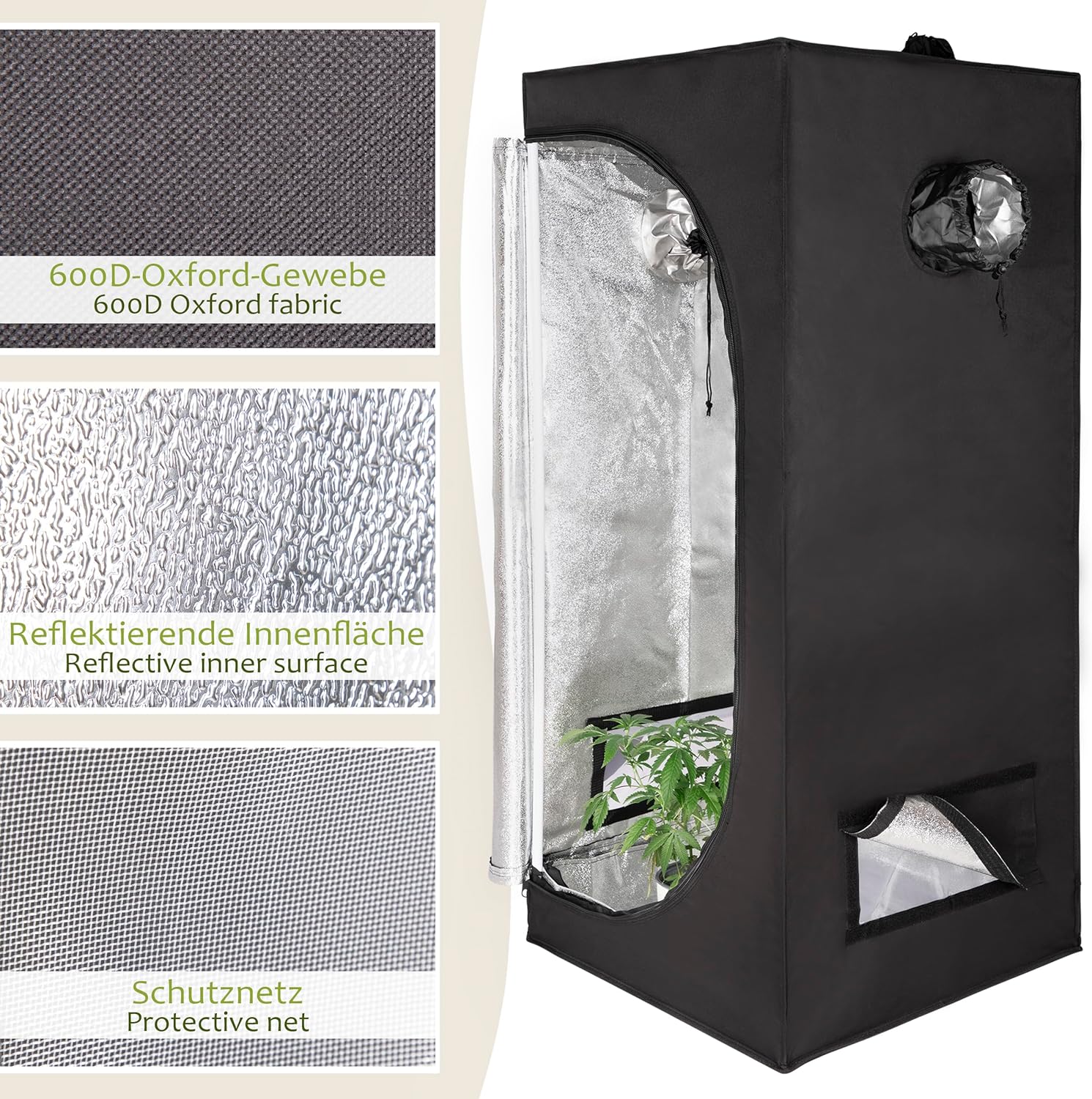 Details: ONVAYA® Pflanzen-Zuchtzelt ǀ 60 x 60 x 140 cm ǀ