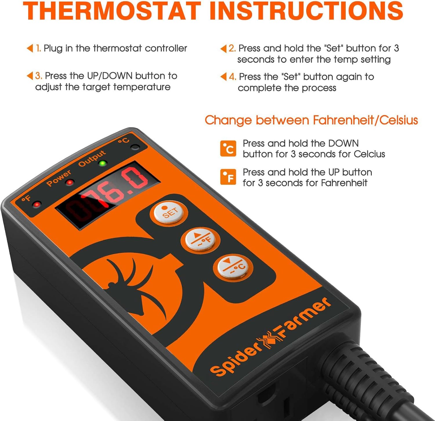 【Breiter Anwendungsbereich】Ideal zum Erwärmen von Pflanzensamen oder Setzlingen unter kalten Bedingungen. Verwendet mit dem Regler kann es eine temperaturgesteuerte Umgebung für bessere Keimung und Pflanzenwachstum bieten. Auch im kalten Winter können Sie jederzeit Ihre Indoor-Gartenarbeit starten. Darüber hinaus bietet Spider Farmer Heizmatten-Set auch eine kontrollierte Umgebung für Aquarien, Reptilien und andere Tiere.