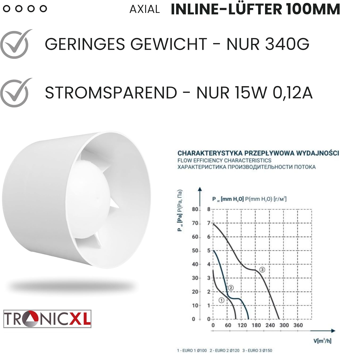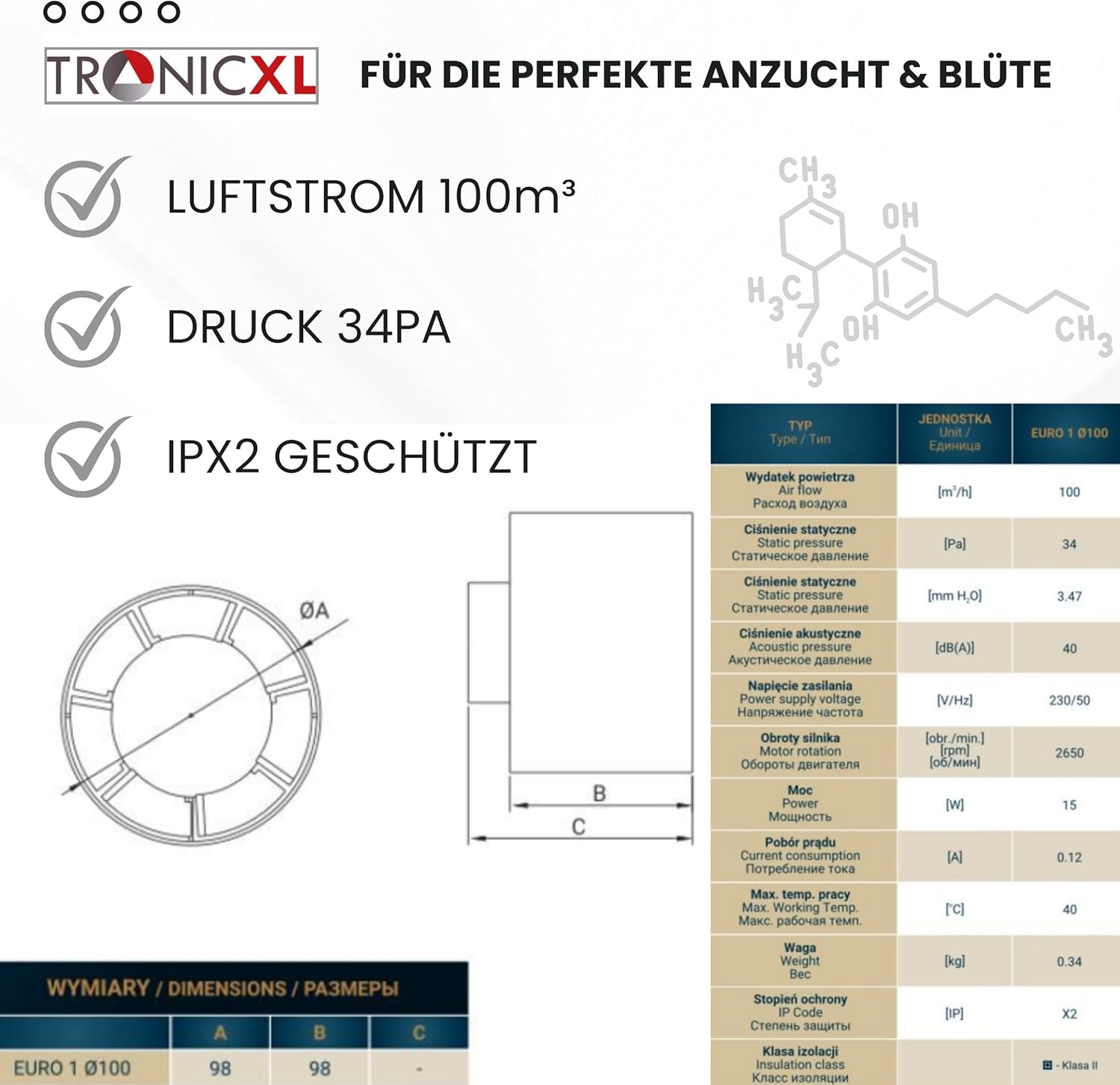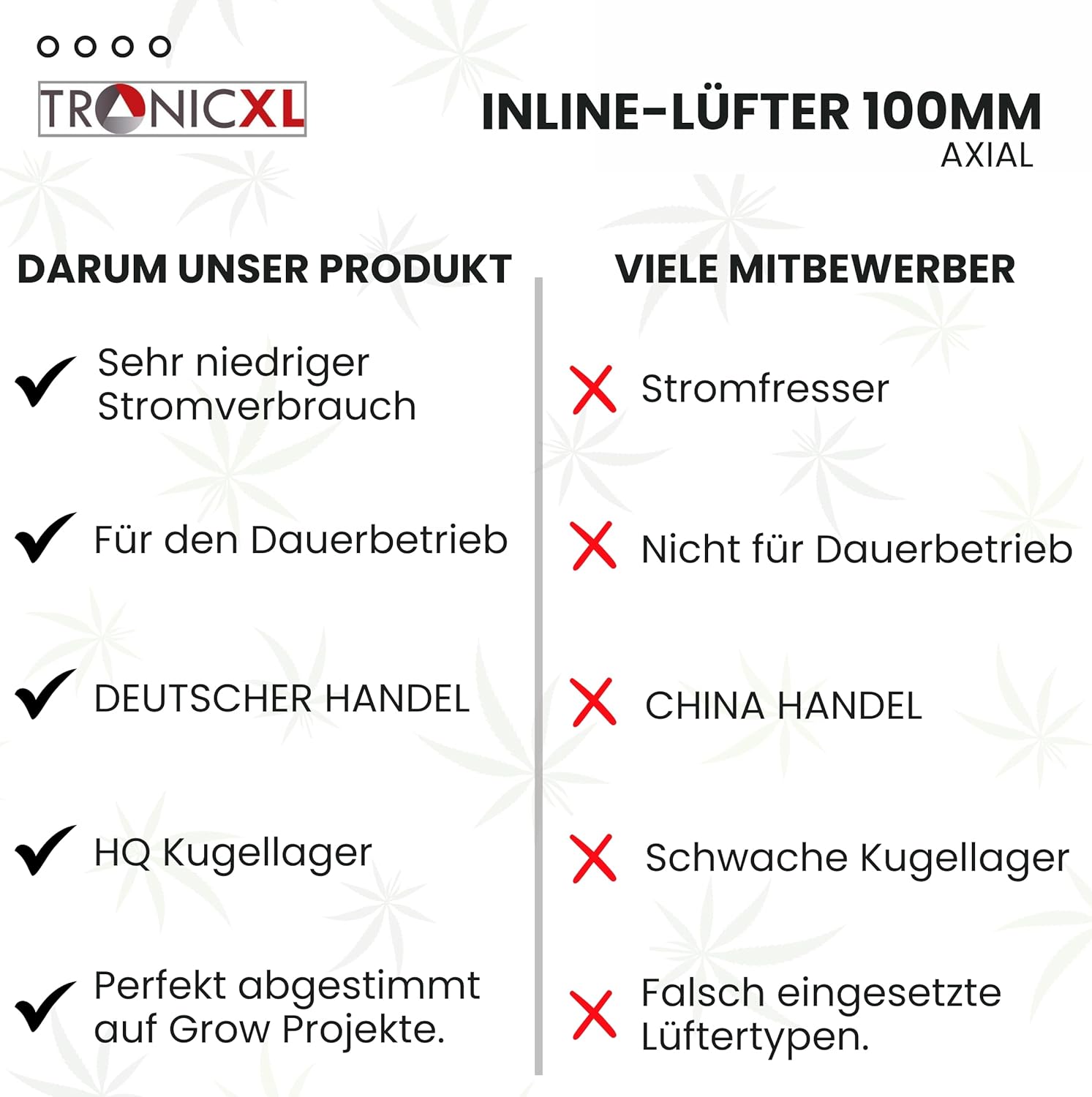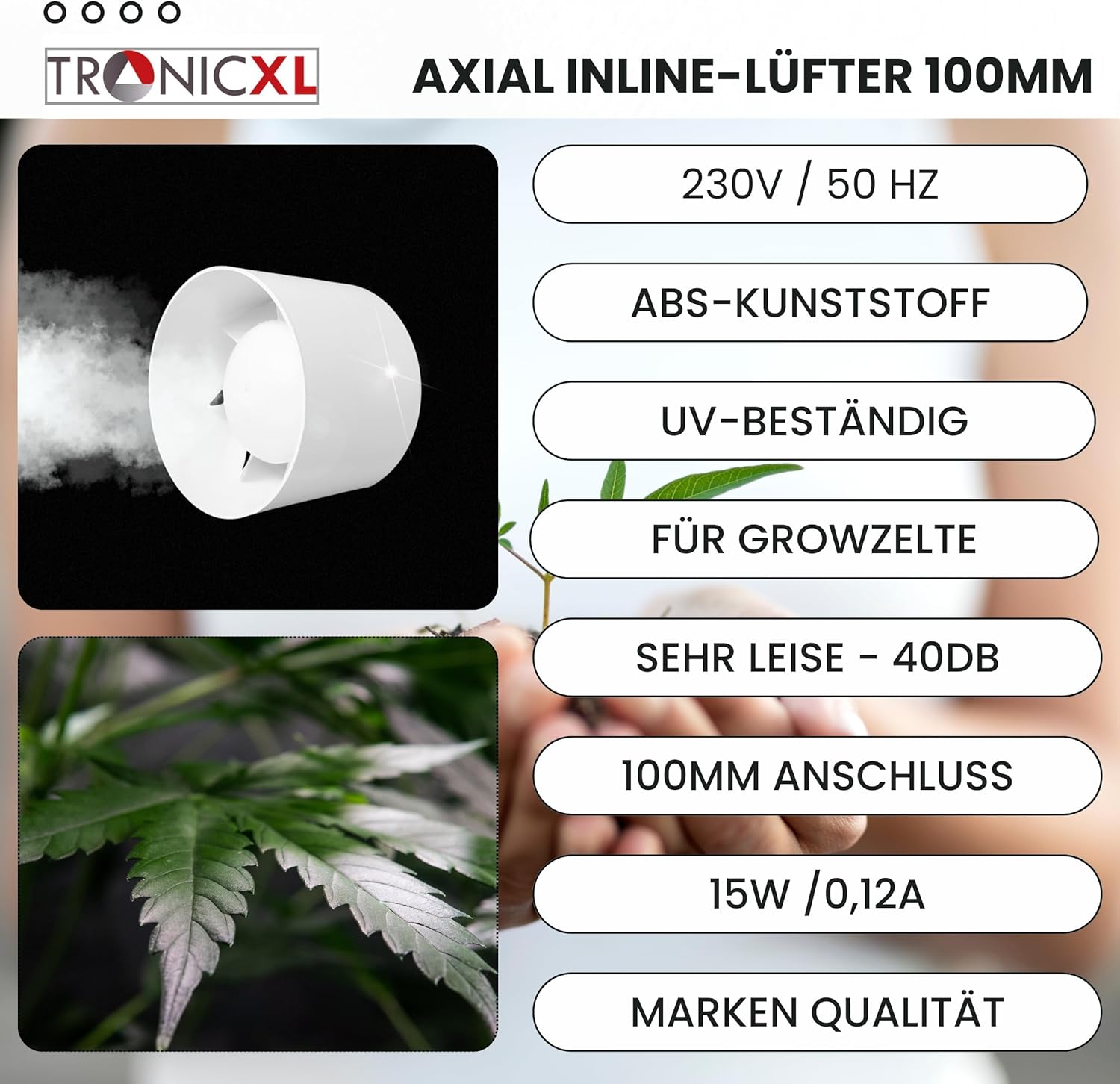 Details: TronicXL 100mm Abluft/Zuluft Grow Lüfter Inline