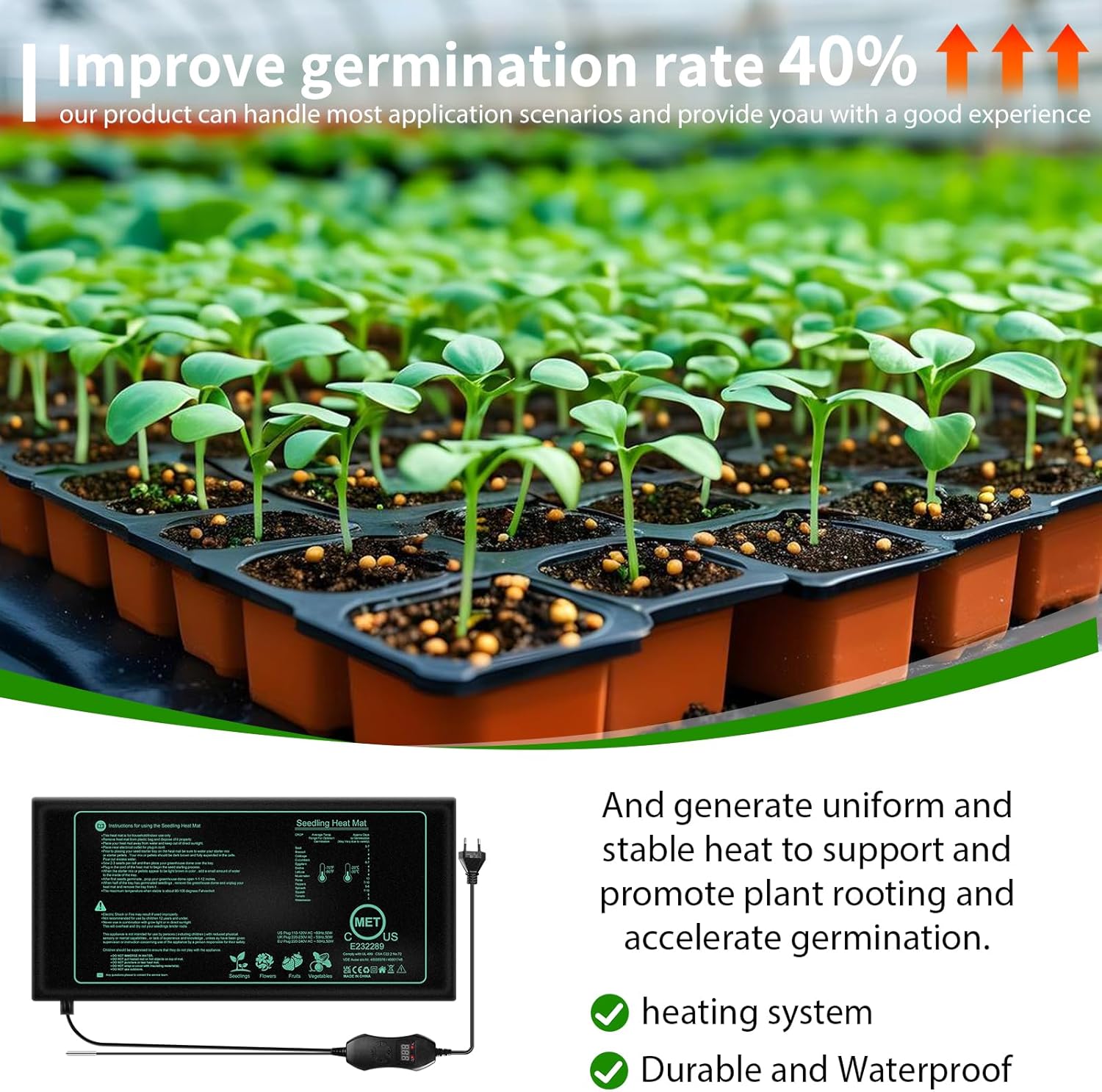 🌱🌱[ Halten Sie eine optimale Temperatur aufrecht】:Heizmatte Mit Thermostat kann die Temperatur im Wurzelbereich auf 68°F~86°F (20°C-30°C) über die Umgebungstemperatur anheben und gleichmäßige und stabile Wärme erzeugen, um die Bewurzelung der Pflanzen und Keimung zu beschleunigen.
