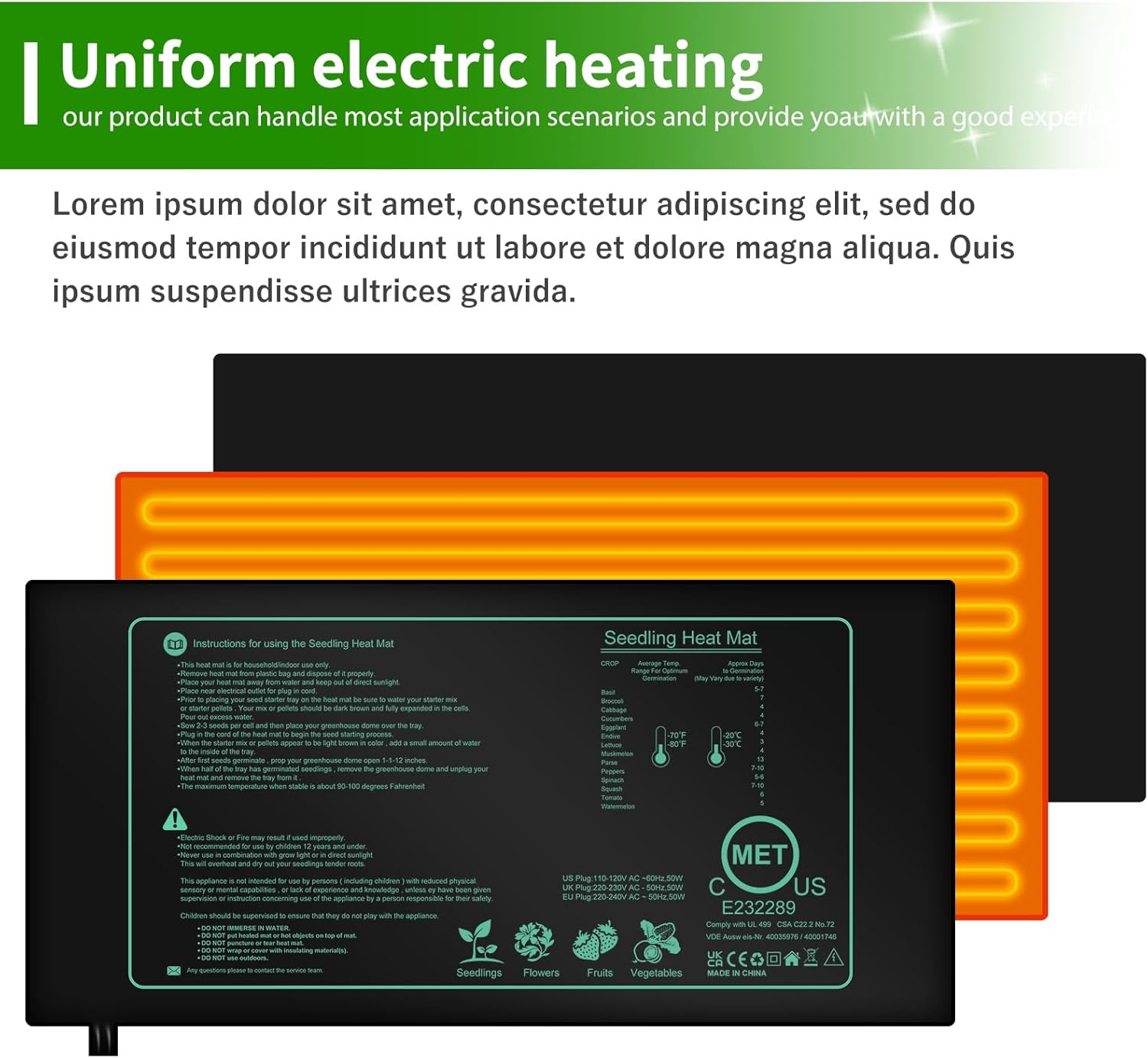 Das 50 Watt Wärmematte Für Sämling heizt effizienter und kann in einen größeren Glasbehälter gelegt werden, um für ausreichend Wärme zu sorgen.