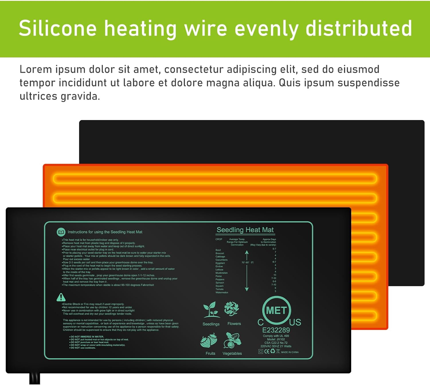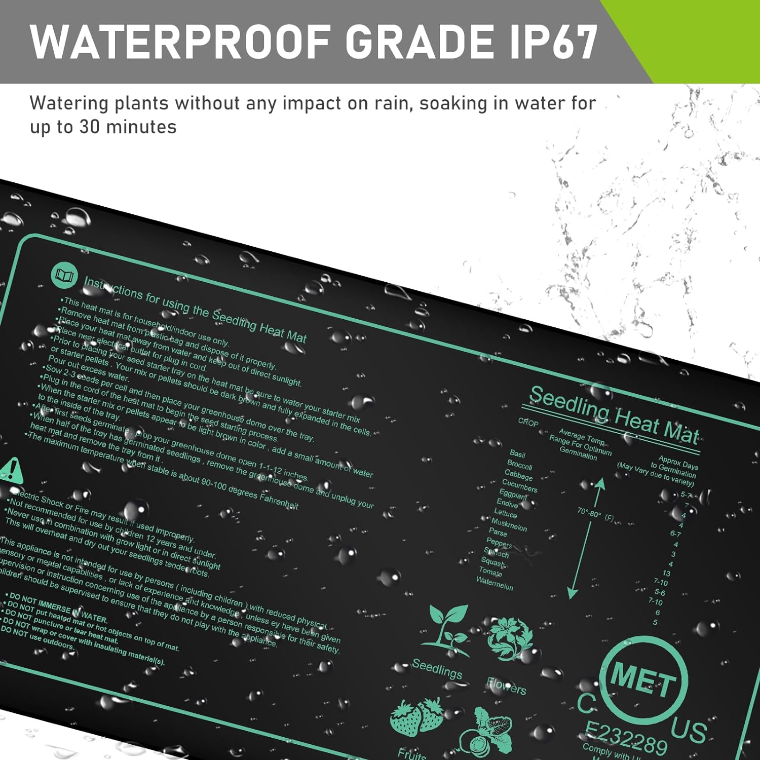 🌱【SICHERES MATERIAL】Unser Heizmatte Pflanzen Oberflächenmaterial ist PVC-Gummiplatte, hochtemperaturbeständig und korrosionsbeständig, und das Heizdrahtmaterial ist Silikondraht-Heizdraht + Nadelvlies-Baumwolle.