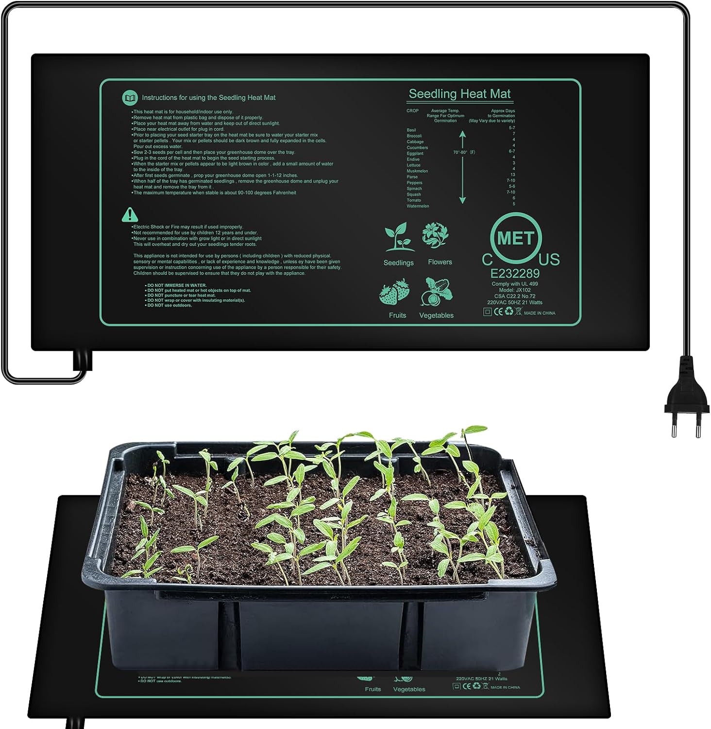 🌱【PACKUNGSINHALT】Wir enthalten 1 Stück Heizmatte Pflanzen mit einer Größe von 25 cm x 52,5 cm/10 x 20,75 Zoll, einer Leistung von 21 W und einer Eingangsspannung von 220 V.