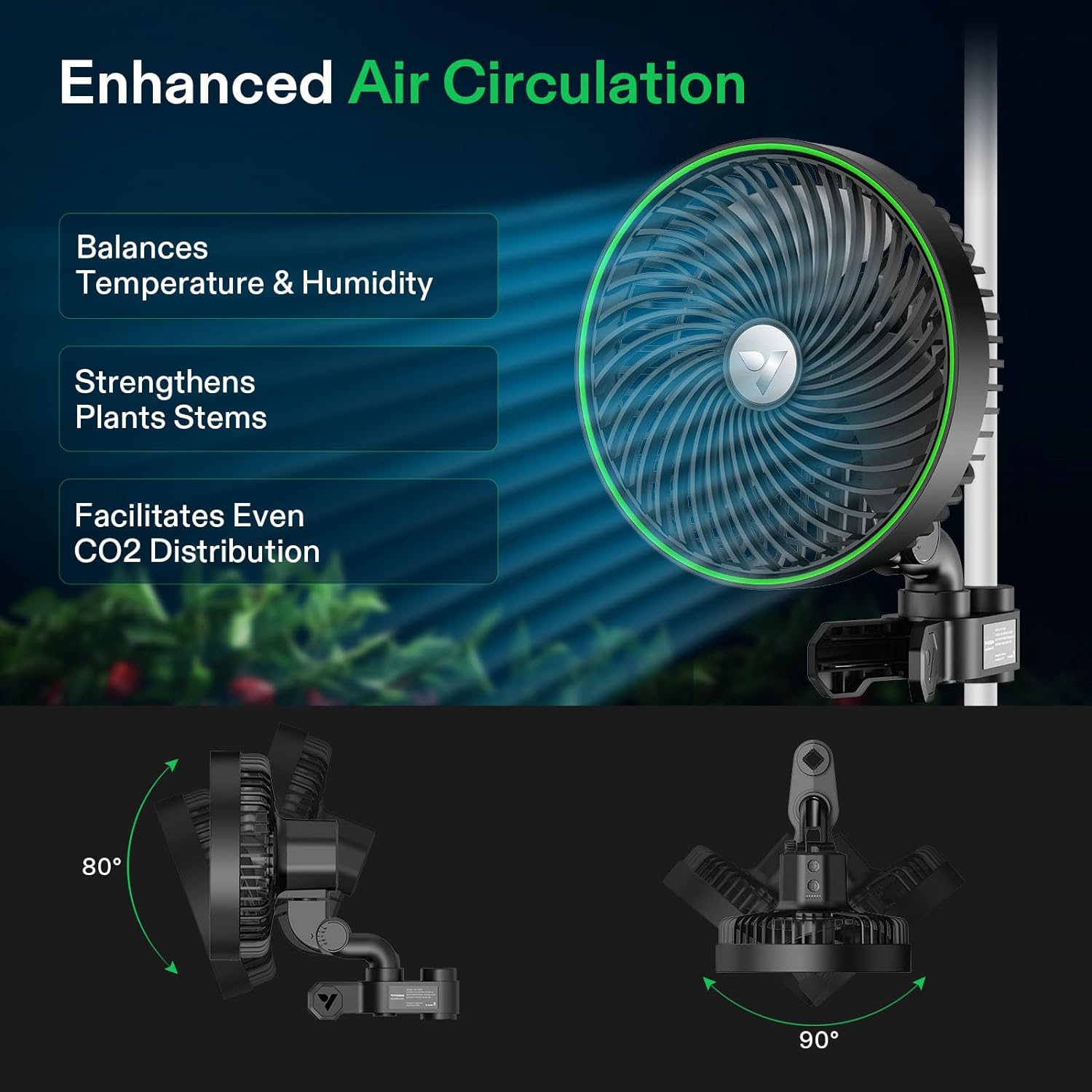 Effiziente Lüfter für die Belüftung: Der AeroZesh-Inline-Kanallüfter bietet einen starken, energieeffizienten Luftstrom mit leisem Mischstrombetrieb und einstellbarer PWM-Drehzahlregelung. Der AeroWave-Clip-Lüfter verfügt über eine automatische horizontale Oszillation von 90°, eine manuelle vertikale Einstellung von 80° und 10 Windgeschwindigkeitsmodi für einen optimalen gerichteten Luftstrom.