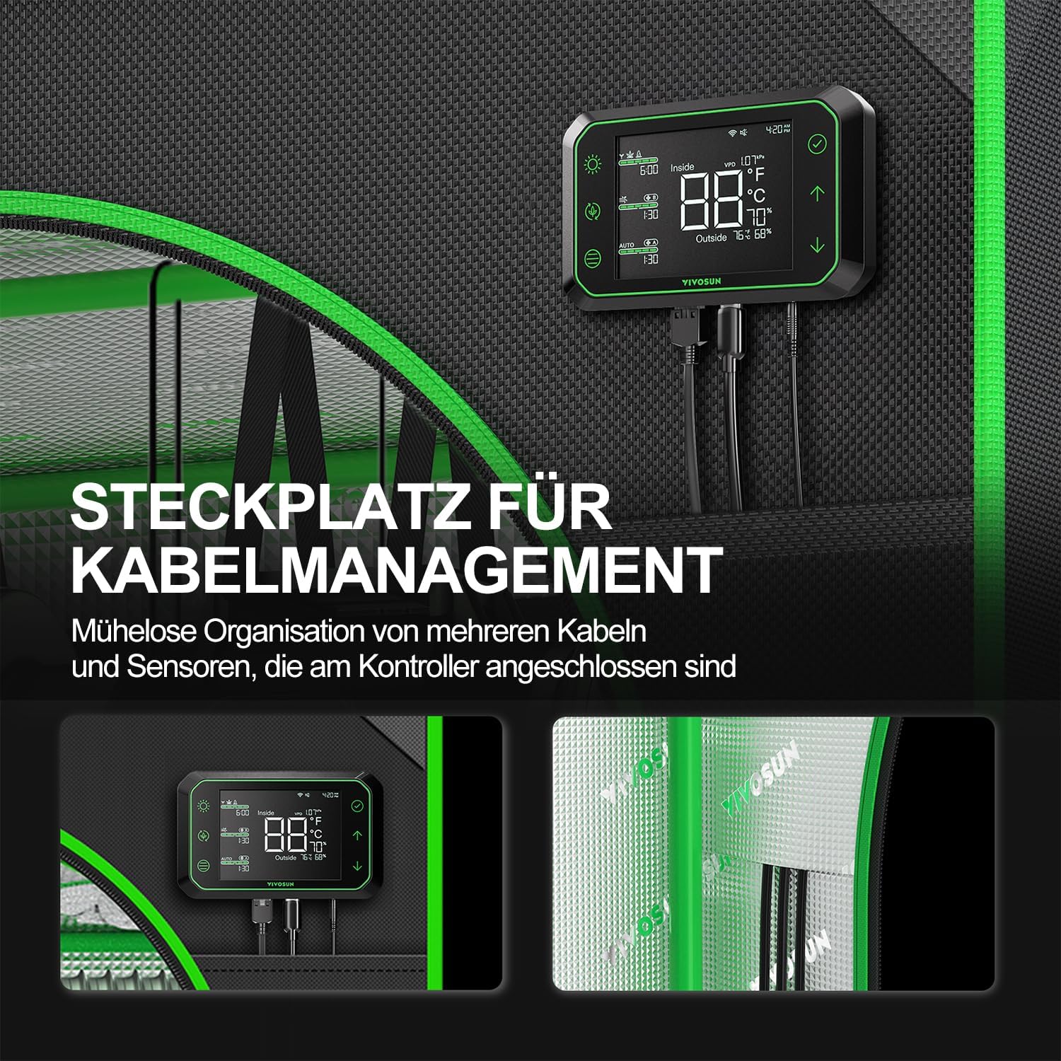 Umweltüberwachung: Mit eingebautem Temperatur- und Luftfeuchtigkeitsmesser und einer Sonde überwacht der GrowHub Controller E42A Veränderungen in der internen und externen Umgebung. Daher können Sie diese Daten anzeigen und über die App programmieren