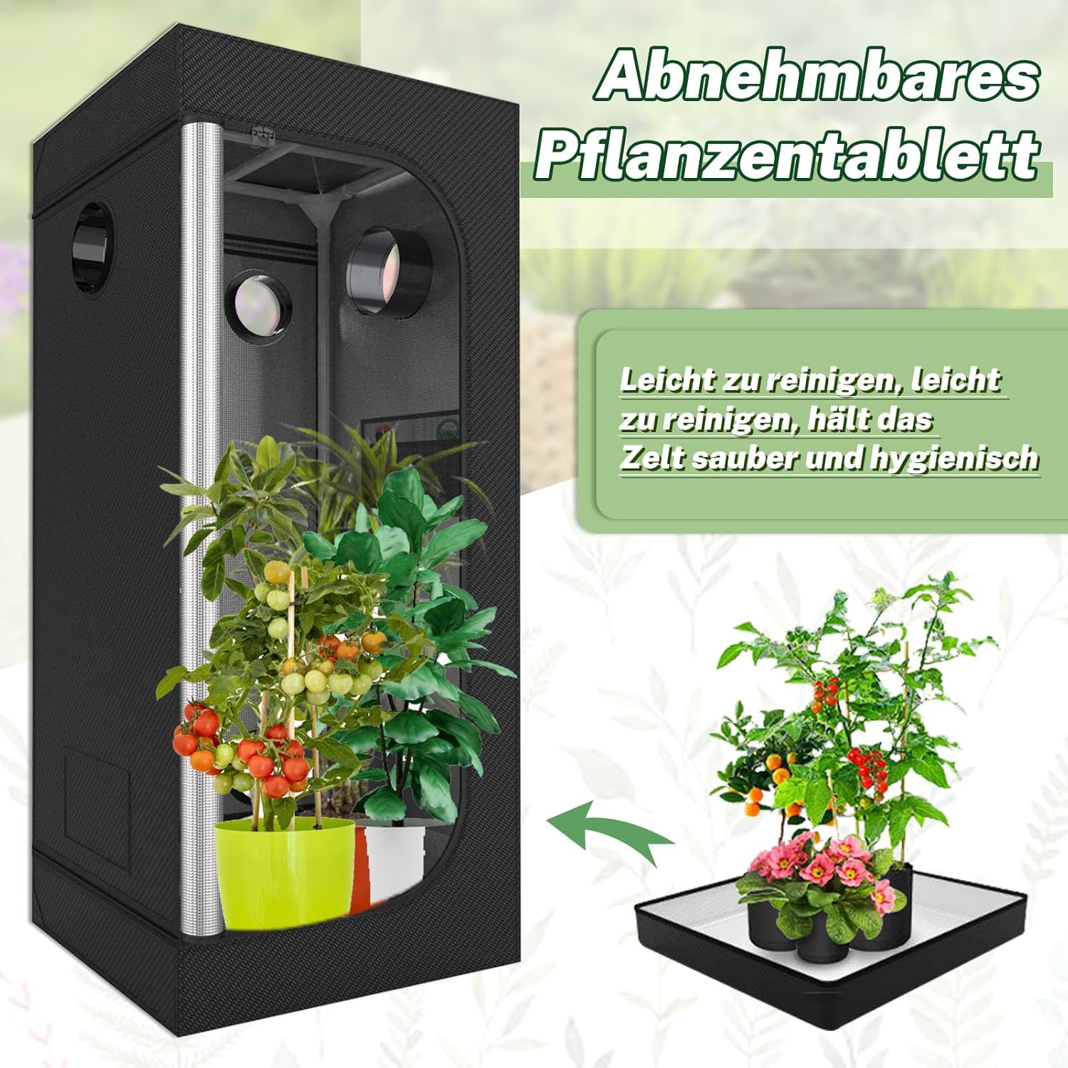 【Durchdachtes Design】Unser Pflanzenzelt verfügt über reservierte Öffnungen für Lüfter, Lichter und Kabel, die eine flexible Platzierung ermöglichen. Das vielseitige Design eignet sich für verschiedene Orte in Ihrem Zuhause wie Garagen, Balkone und Waschküchen. Erhältlich in verschiedenen Größen, um Ihren individuellen Bedürfnissen gerecht zu werden.